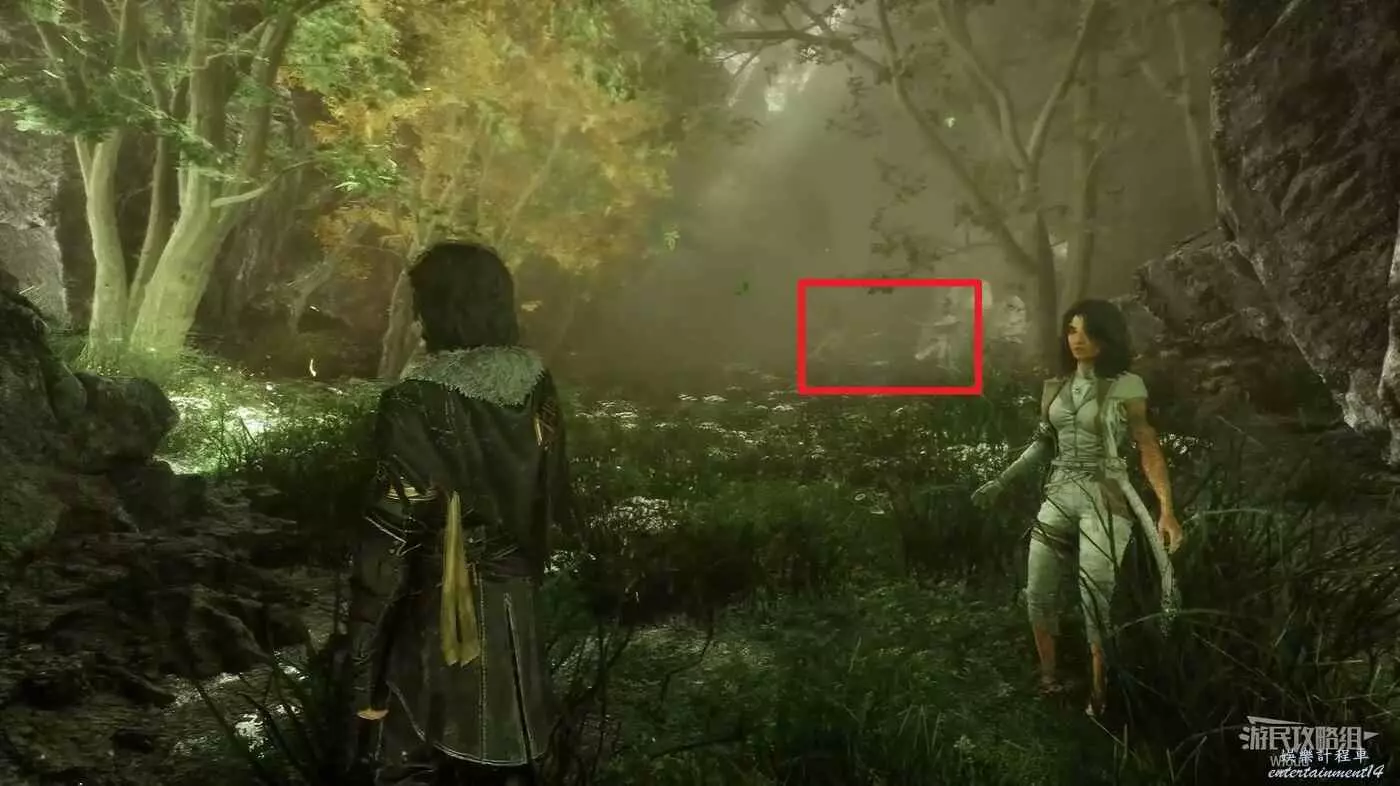 進入地圖沿路走,直到左側出現一條大路,前面直走可拿到一個【靈光色】,左拐進入大路不遠處找到第一個旗幟並觸發劇情。