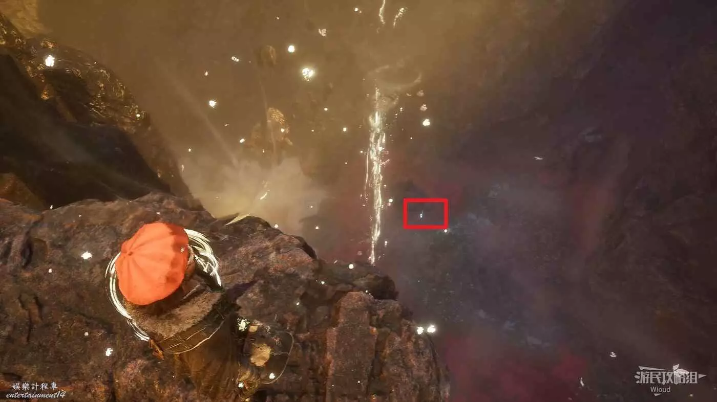 回到旗幟位置,貼著左牆走,不遠處懸崖邊可撿到道具【奪目催化源色】。