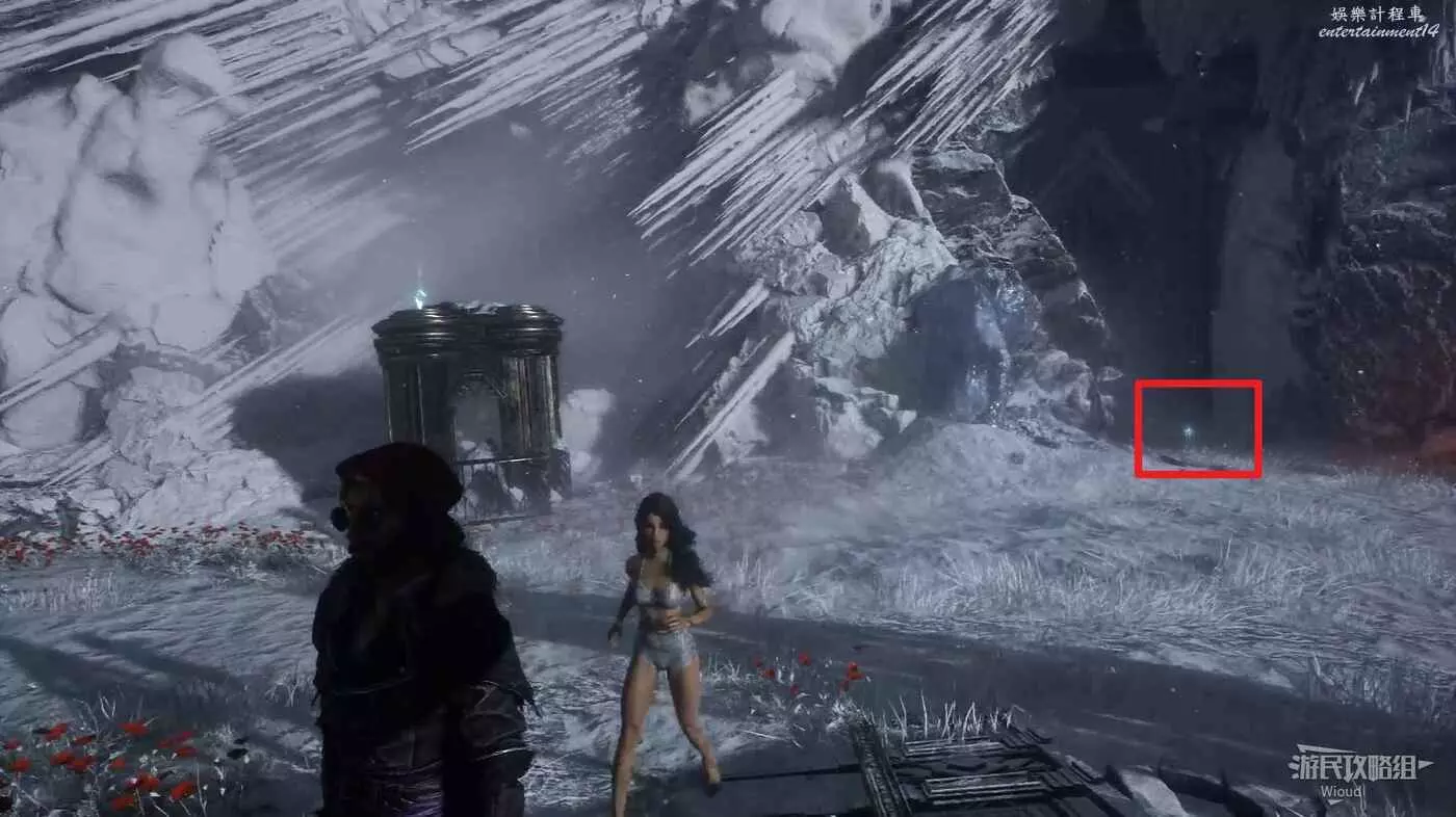 回到旗幟位置,往右側有兩個藍色冰刺的過道走。
