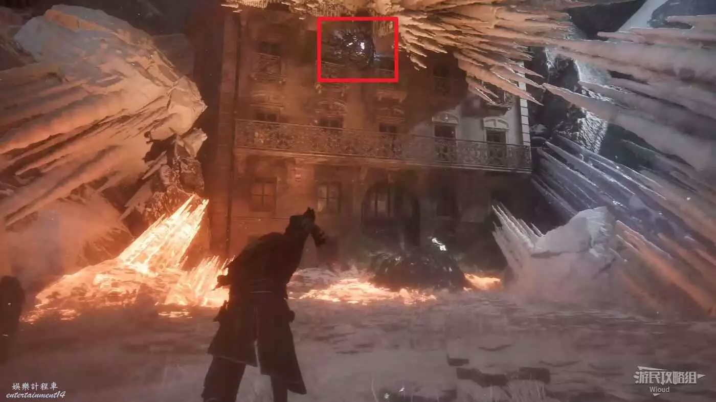這個區域右側有個紅色怪物,將其擊敗可獲得符紋【以死引燃】,下圖怪物位置右側軌道處有個往下走的繩索。