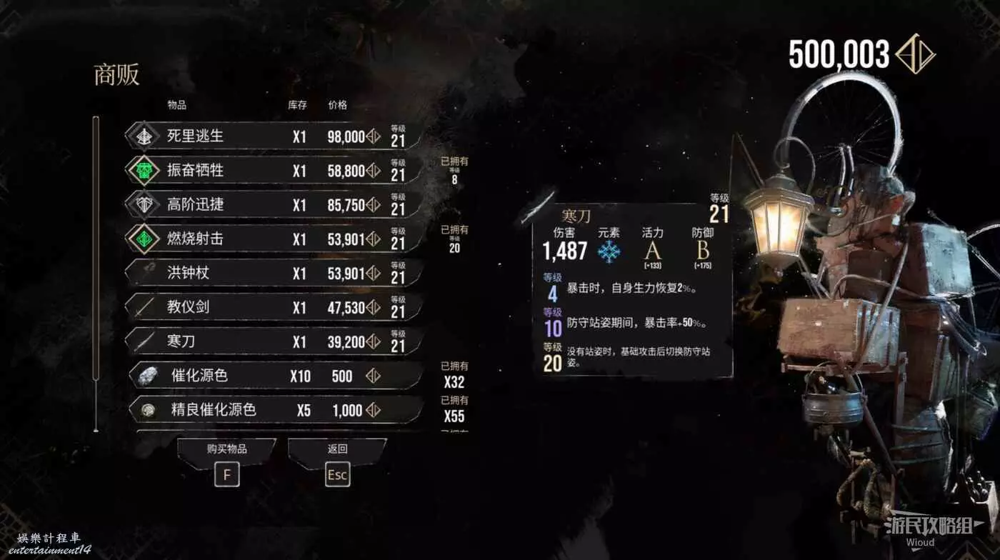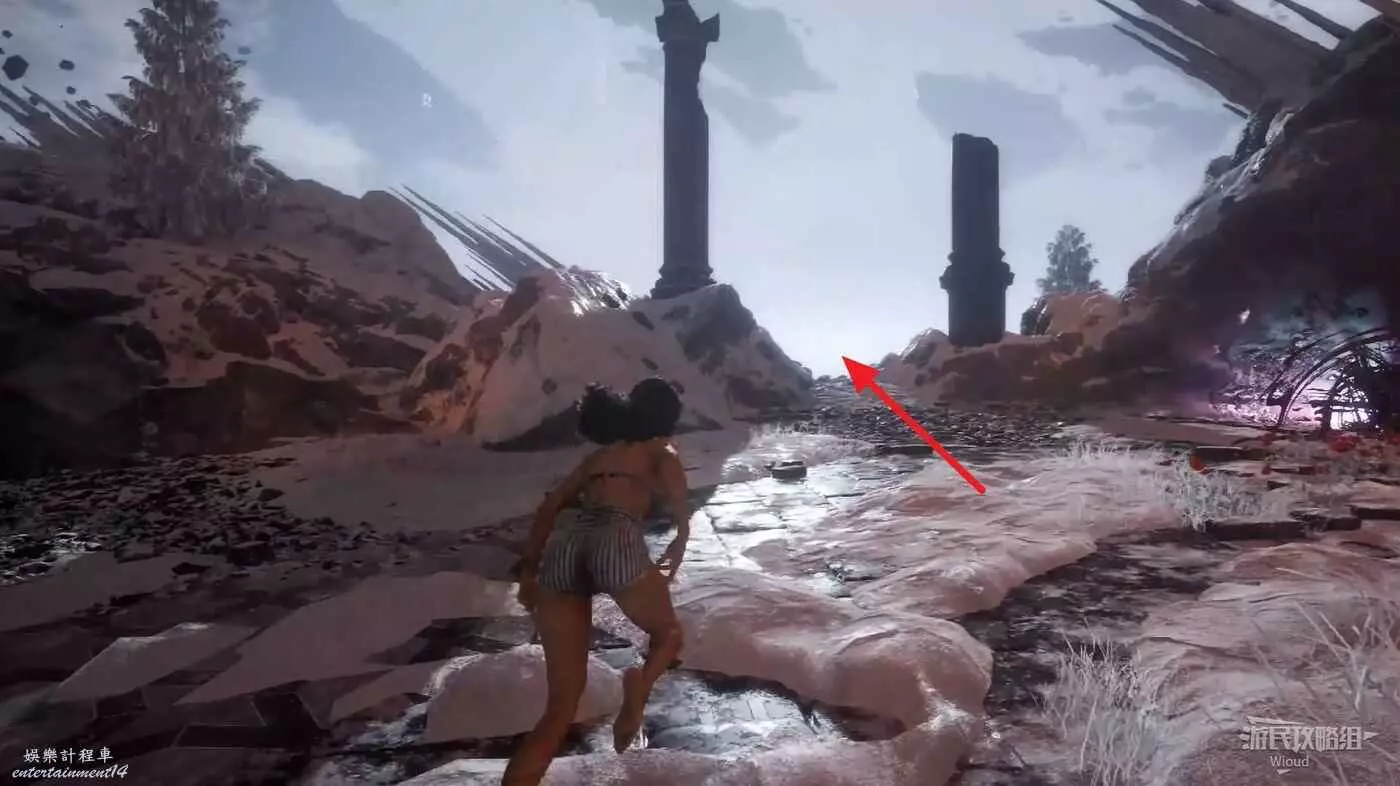 商人位置右拐可找到一個【靈光色】和本地圖的【默偶】,默偶身後有強化道具。