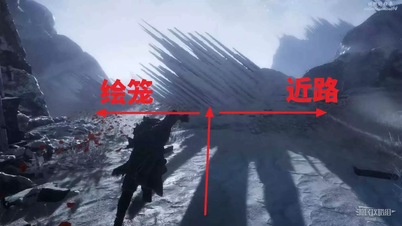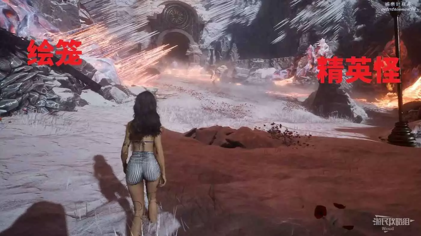 來到左側開闊區域,右側紅色區域有個精英怪,將其擊敗獲得武器【懸鐘刺】,區域左側有個繪籠。