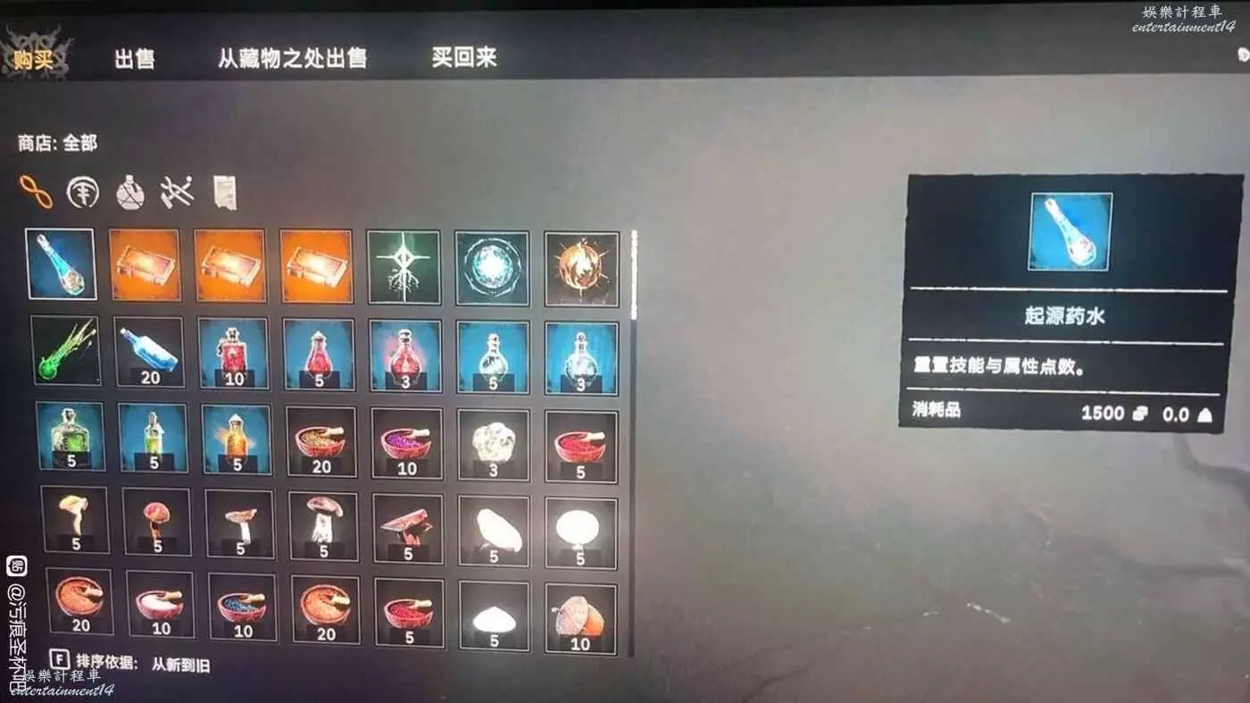 起源藥水好像有個商人賣,在第一張城堡下面屋子裡的戴眼鏡的商人