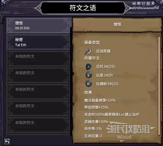 鑲嵌頁面,左側點擊已經解鎖的符紋之語查看配方,通過對應的武器類型與配方即可打造出帶有固定效果的武器。
