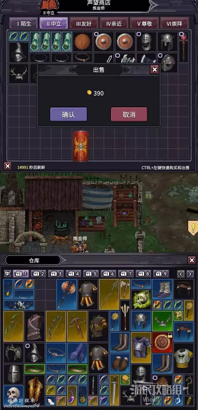 城鎮找到名為【煉金師】的NPC,此處可以選擇出售某些裝備換取金錢。