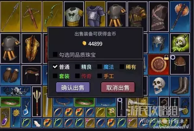 向商人售賣單個或批量售賣某個品質的裝備可以獲得大量金幣。