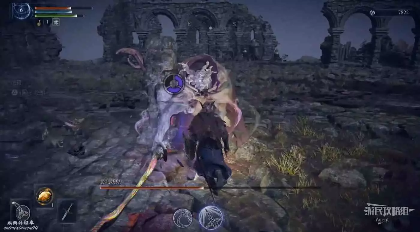 一路打怪,開寶箱收集武器,先在賜福點升到6級,然後去救起女爵一起打惡兆妖鬼。