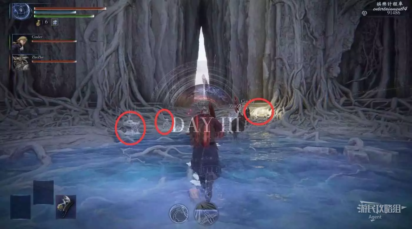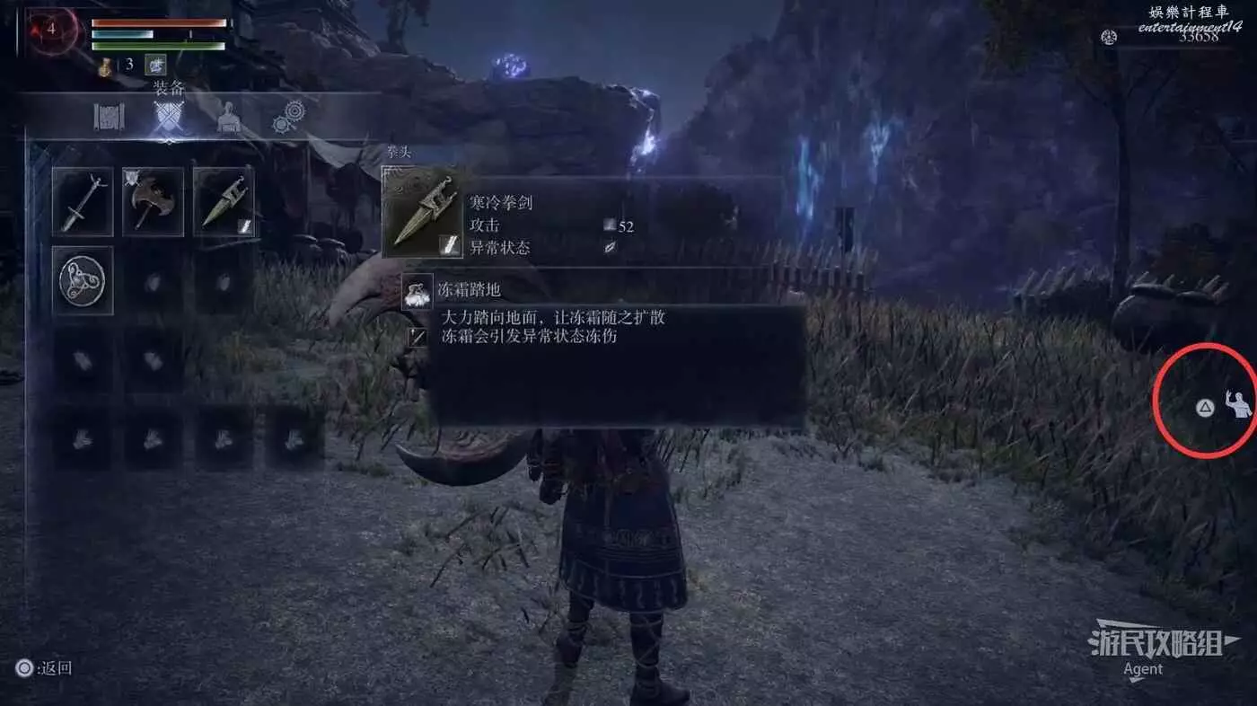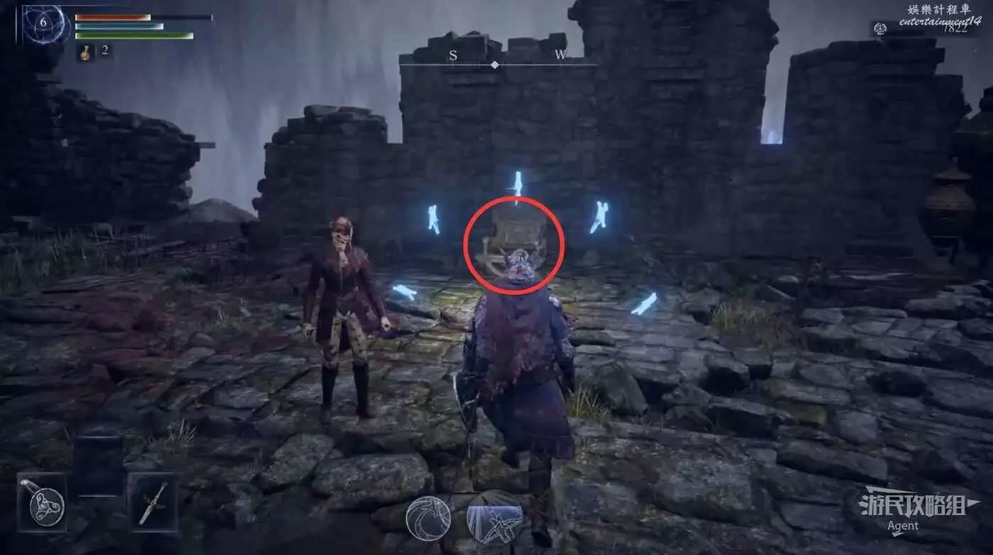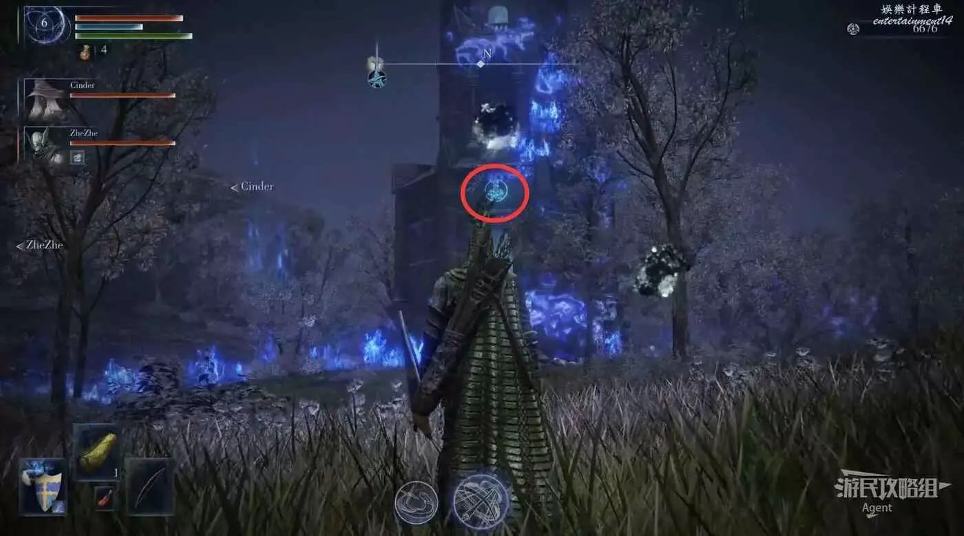 3、注意下圖所示的紫色圈,第一次陷入瀕死狀態時顯示一格,如果頻繁陷入瀕死狀態,第二次就會顯示兩格,第三次及更多次顯示三格。維持存活狀態能減少紫色圈的累積。或者觸碰賜福點,紫色圈的格子數會重置。
