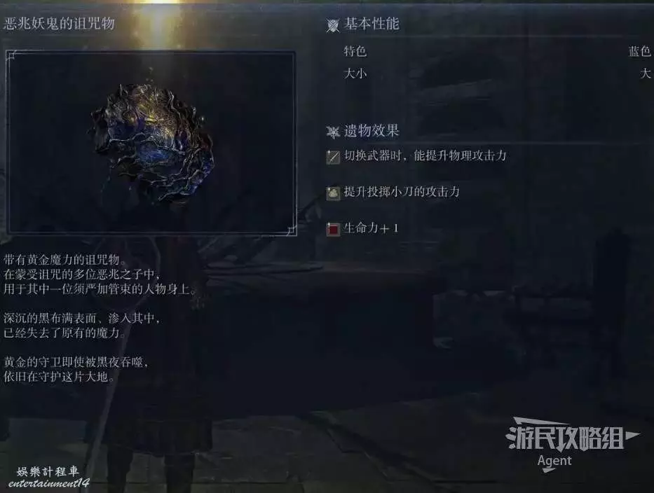 擊敗惡兆妖鬼後,坐到椅子上去結束教學關,獲得遺物“惡兆妖鬼的詛咒物”。