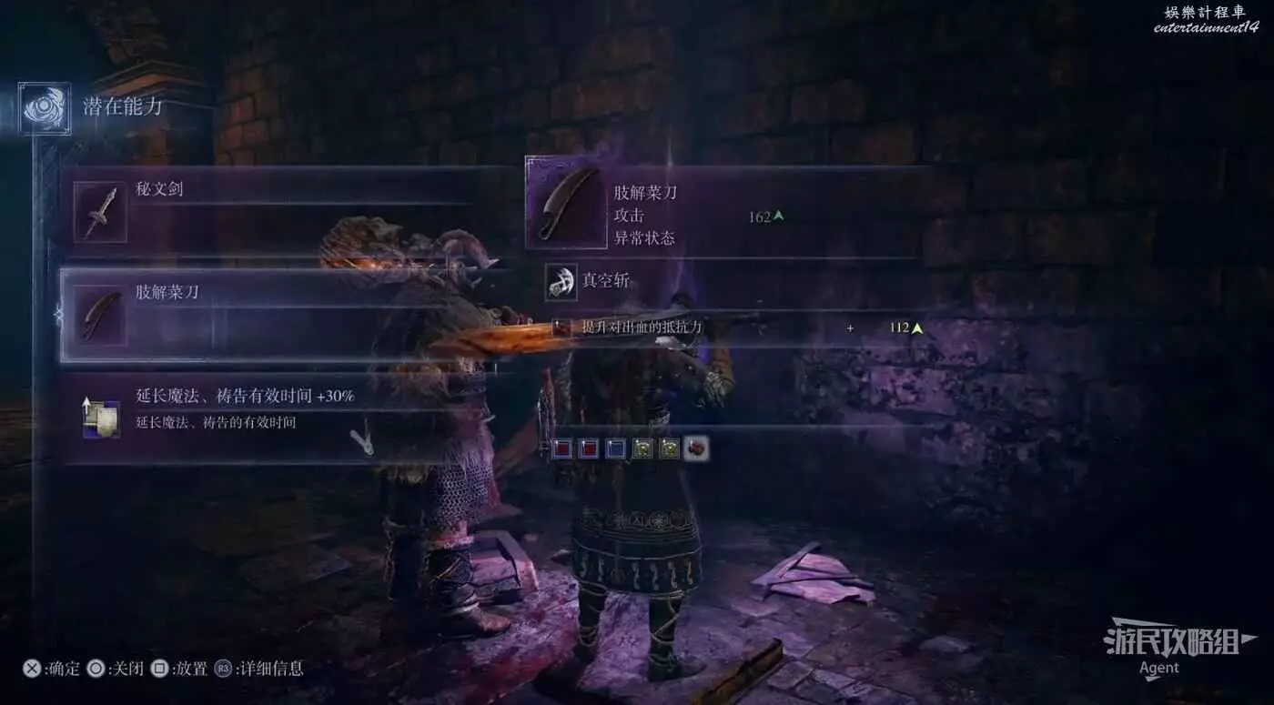 很多武器除了戰技,還有附加效果,只需在裝備欄持有該武器,就能獲得效果。所以哪怕是自己不用的武器,只要附加效果對你有用,就應該撿起來放裝備欄裡。