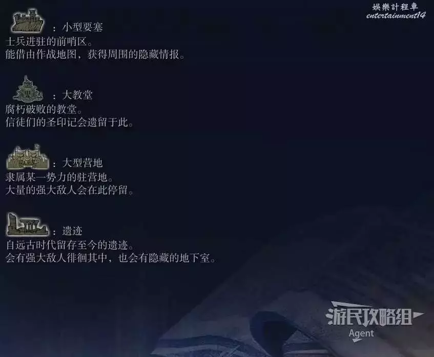 小型要塞:有強敵。到樓上房間拿地圖,可在地圖上標註附近糞金龜的位置。擊殺糞金龜可獲得護符。