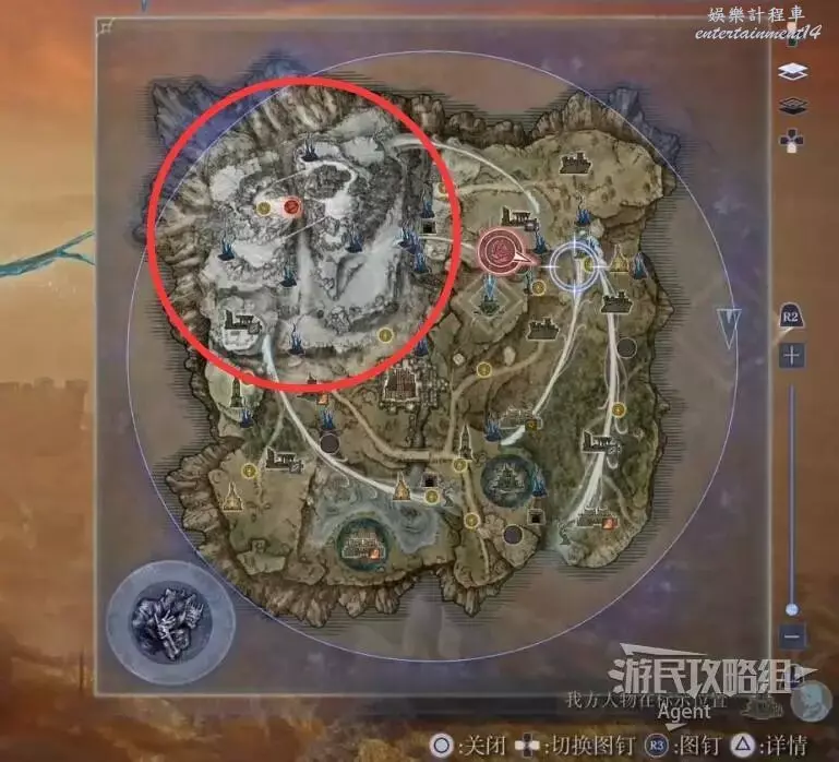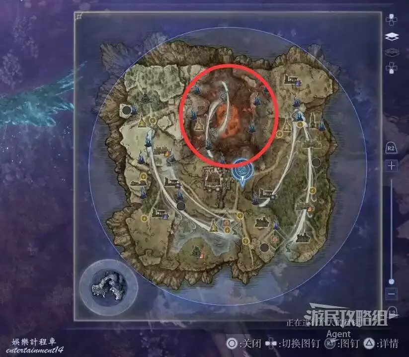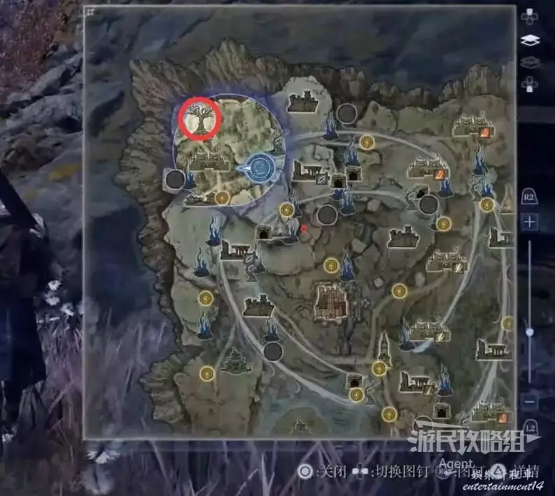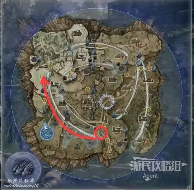 過一會兒第二次縮圈,會持續縮小至最小。地圖上的黃金樹即縮圈至最小的終點,應儘快趕往這裡。