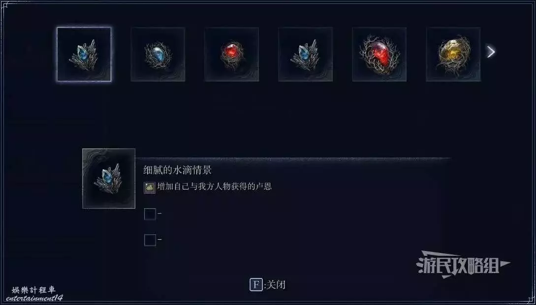 艾爾登法環 黑夜君臨 速刷遺物技巧 30 5 月 2025-05-30 廣告 作者:瑞破受氣包 來源:遊民星空 每次出擊都可以解鎖新的遺物,每名角色可以裝備3件遺物來獲取被動增益,但掉落遺物的效果是完全隨機的,可以通過下文介紹的方式來快速刷取。 刷遺物技巧 備份遊戲存檔→前往圓桌廳堂找小壺商人→花費600暗痕購買情景原石(隨機抽取一件遺物)。如果沒有刷出想要的遺物,就讀檔重複此過程,為了提升效率,建議至少獲得6000暗痕之後再開始刷,這樣能一次刷10個。