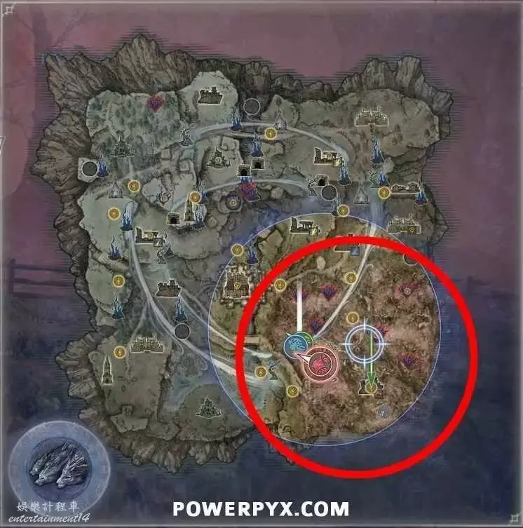 【腐敗森林】特異地形事件會在地圖東南邊刷新一片紫色的森林,此區域會附加腐敗效果(身處其中會持續損失生命值)。在腐敗效果累積期間持續治療自身並跑酷繞過敵人,前往帶有紅色旗幟標記的堡壘,在側面塔樓的屋頂獲得藏寶圖,然後會新增一個指向某棵樹的紅色旗幟標記指引。爬到樹上跳到樹幹側面的花朵處與它互動,即可獲得免疫猩紅腐敗的能力。