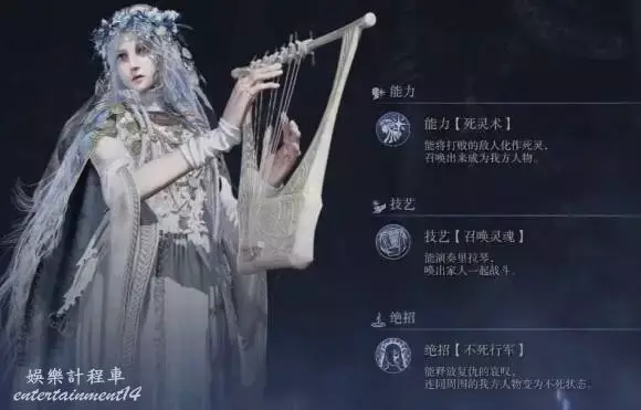 演奏里拉琴,召喚3個靈體中的一個,一同進行戰鬥。