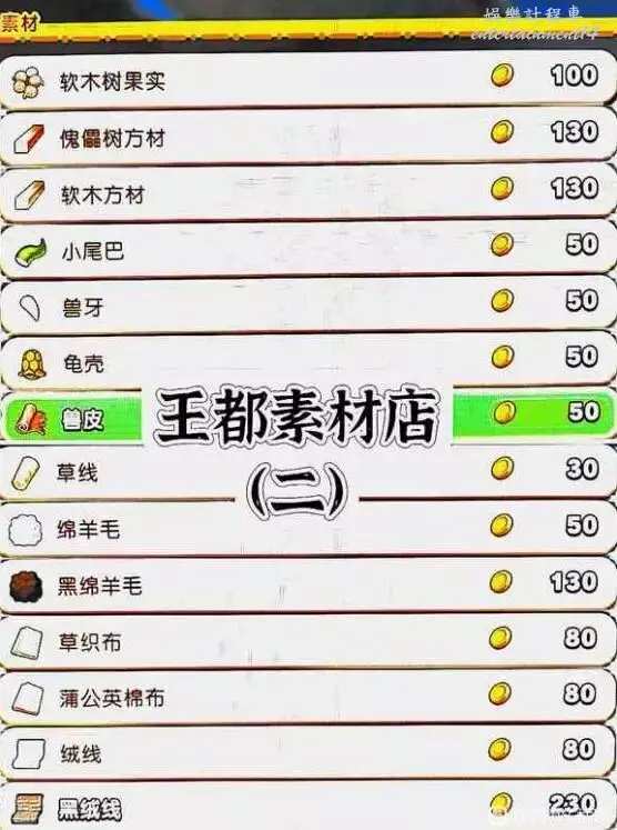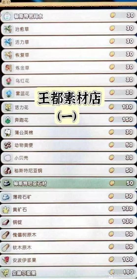 奇幻生活i轉圈圈的龍和偷取時間的少女 王都商店出售物品一覽