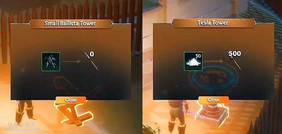注意:弩炮塔、弩炮弓、小型特斯拉塔和大型特斯拉塔都需要裝載彈藥。你可以通過點擊它們並將鐵碎片新增到弩車塔/弓或將光石塵新增到特斯拉塔來實現。