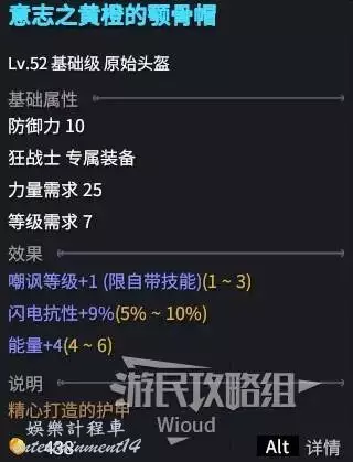 首碼和字尾都會為裝備提供詞條效果,【意志之】為這件裝備提供了【能量+4】的效果,【黃橙的】為這件裝備提供了【閃電抗性+9%】的效果。