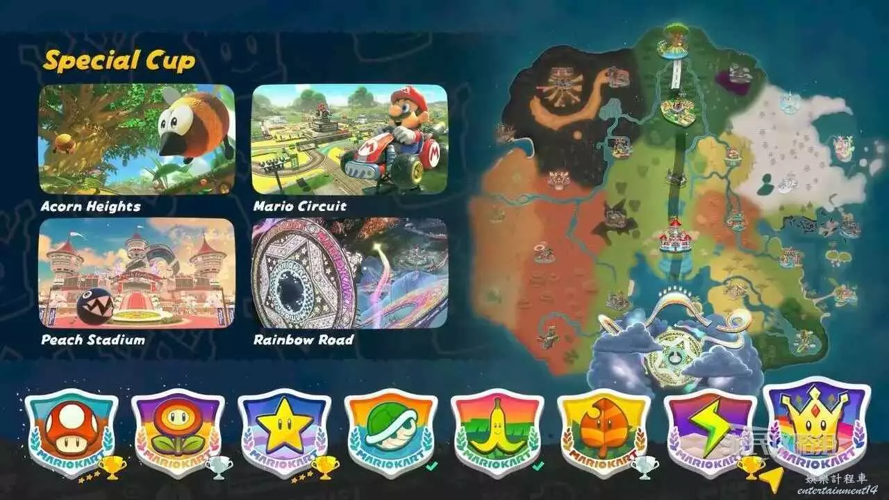 瑪利歐賽車世界 彩虹之路解鎖方法 7 6 月 2025-06-07 廣告 作者:瑞破受氣包 來源:遊民星空 彩虹之路怎麼解鎖 選擇單人遊戲或多人遊戲的【大獎賽】模式可以選擇七個不同的杯賽,每個杯賽包含四條賽道,包括蘑菇杯、鮮花杯、星星杯、龜殼杯、香蕉杯、樹葉杯和閃電杯。在完成【大獎賽】模式中的所有杯賽後,即可解鎖隱藏的第八個杯賽【特別杯】。 與完成杯賽的排名沒有關係,只需要完成就能解鎖第八個杯賽,解鎖之後即可遊玩經典的彩虹之路賽道。
