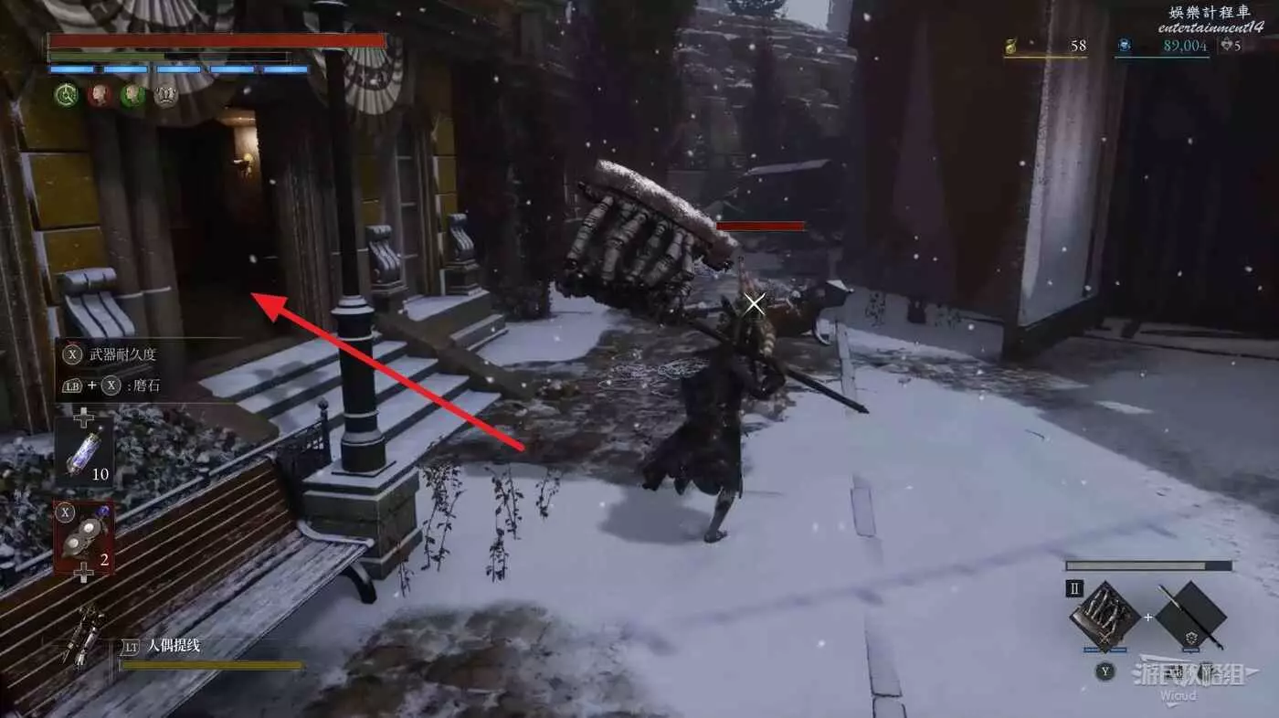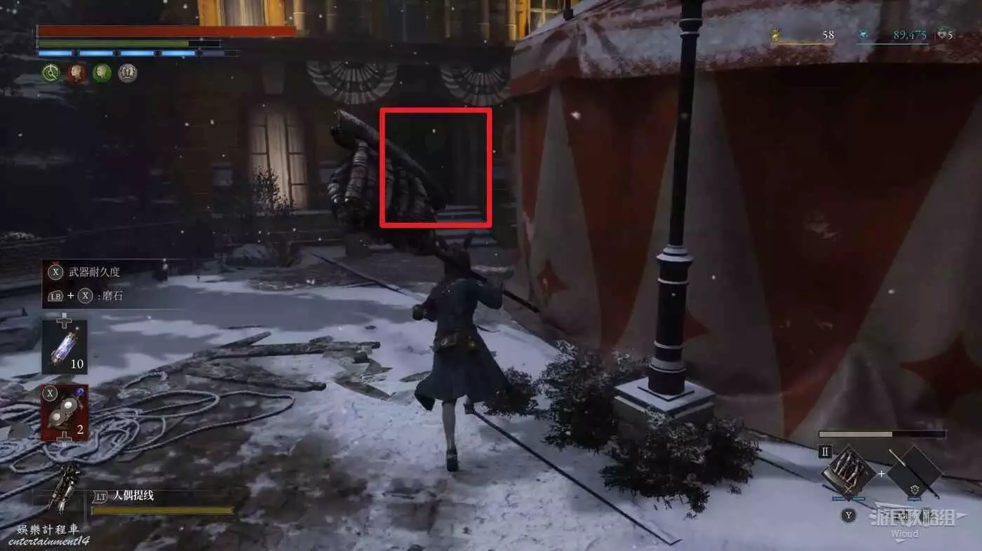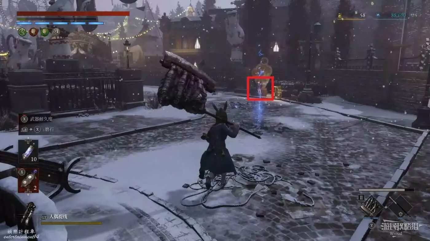 回到剛進這個區域的大入口往左走,不遠處紅框所示位置可以撿到第二個【狂歡幣】。
