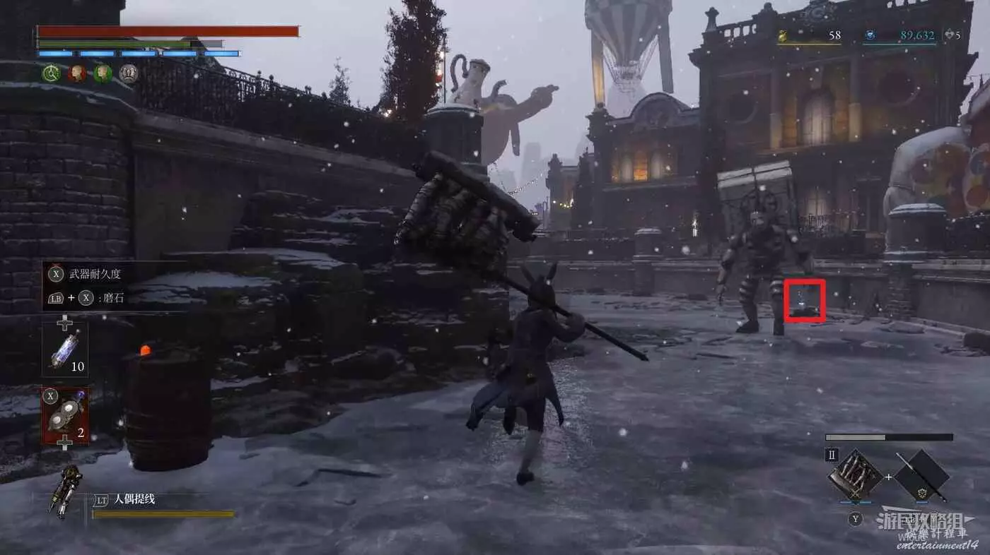 出門繼續貼著左牆往裡走,這裡有個容易被忽略的道具【鉛球】。