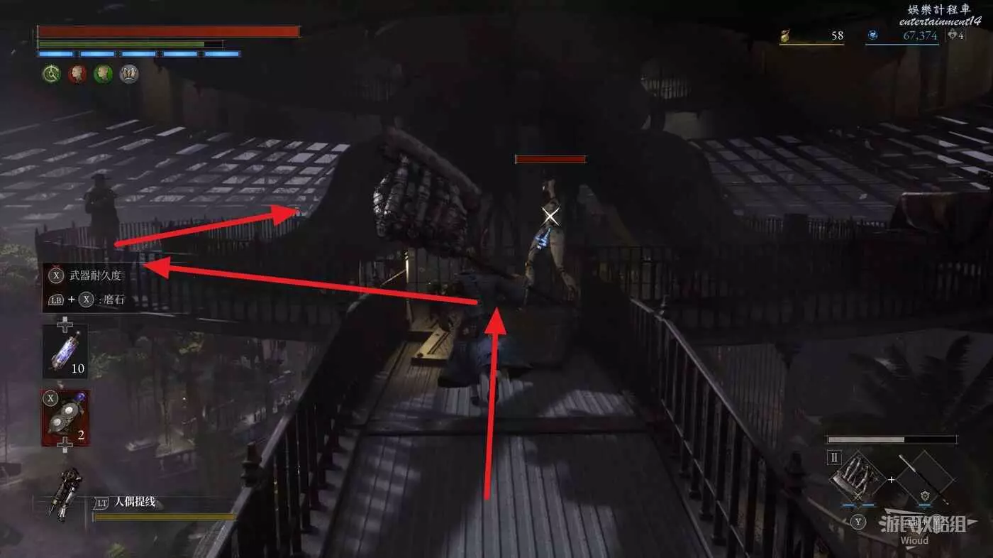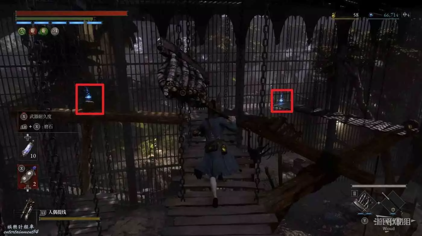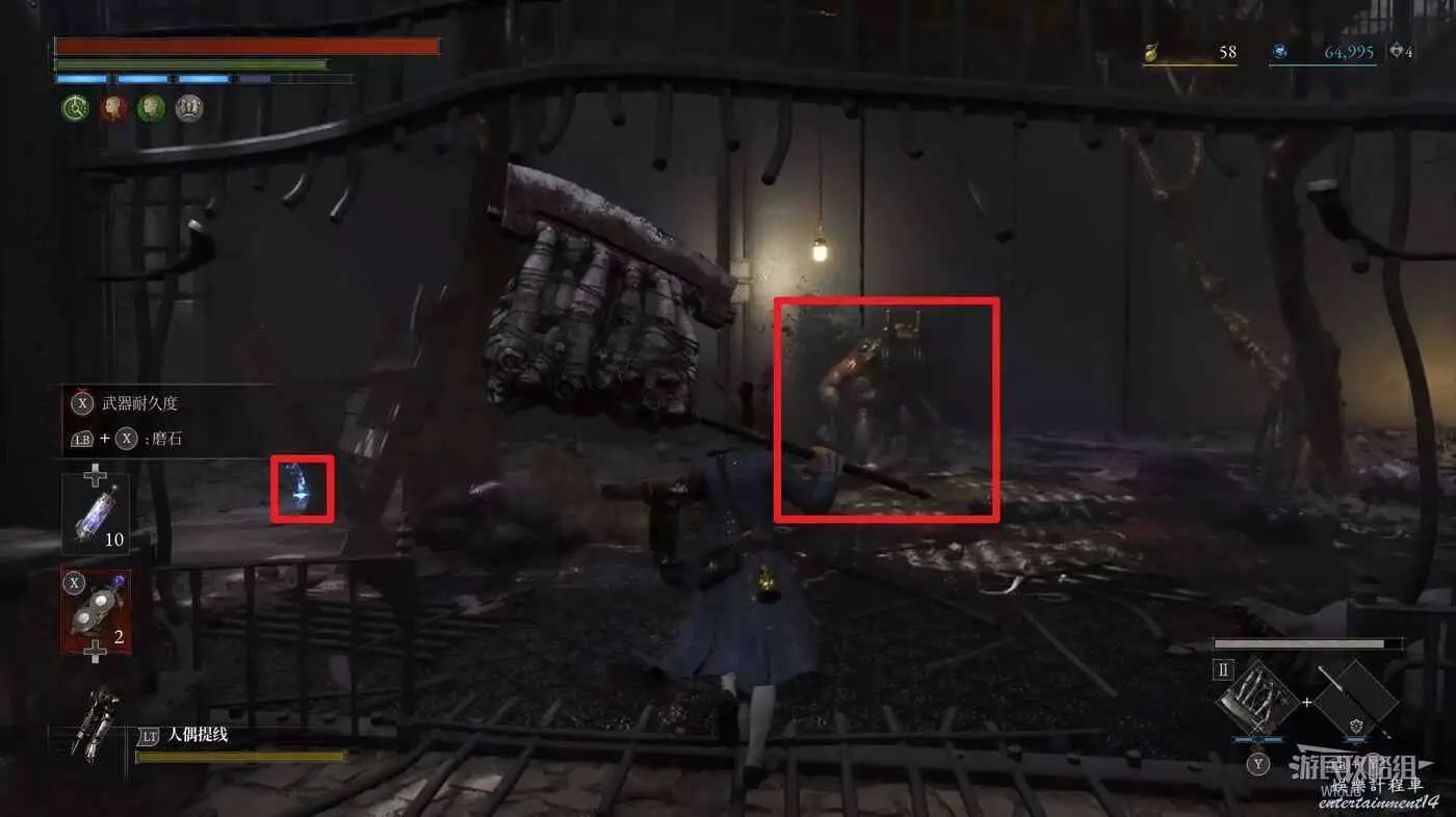 回到高層梯子處往右走,中間會遇到一個向上的梯子,先無視繼續往前走。
