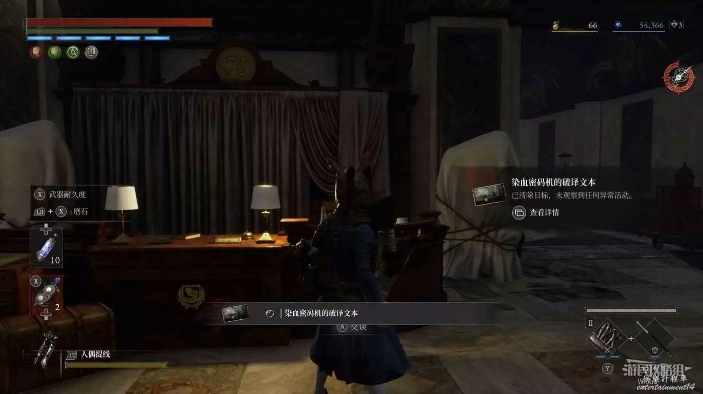 在覓蹤者處獲得【染血密碼機的破譯文本】。