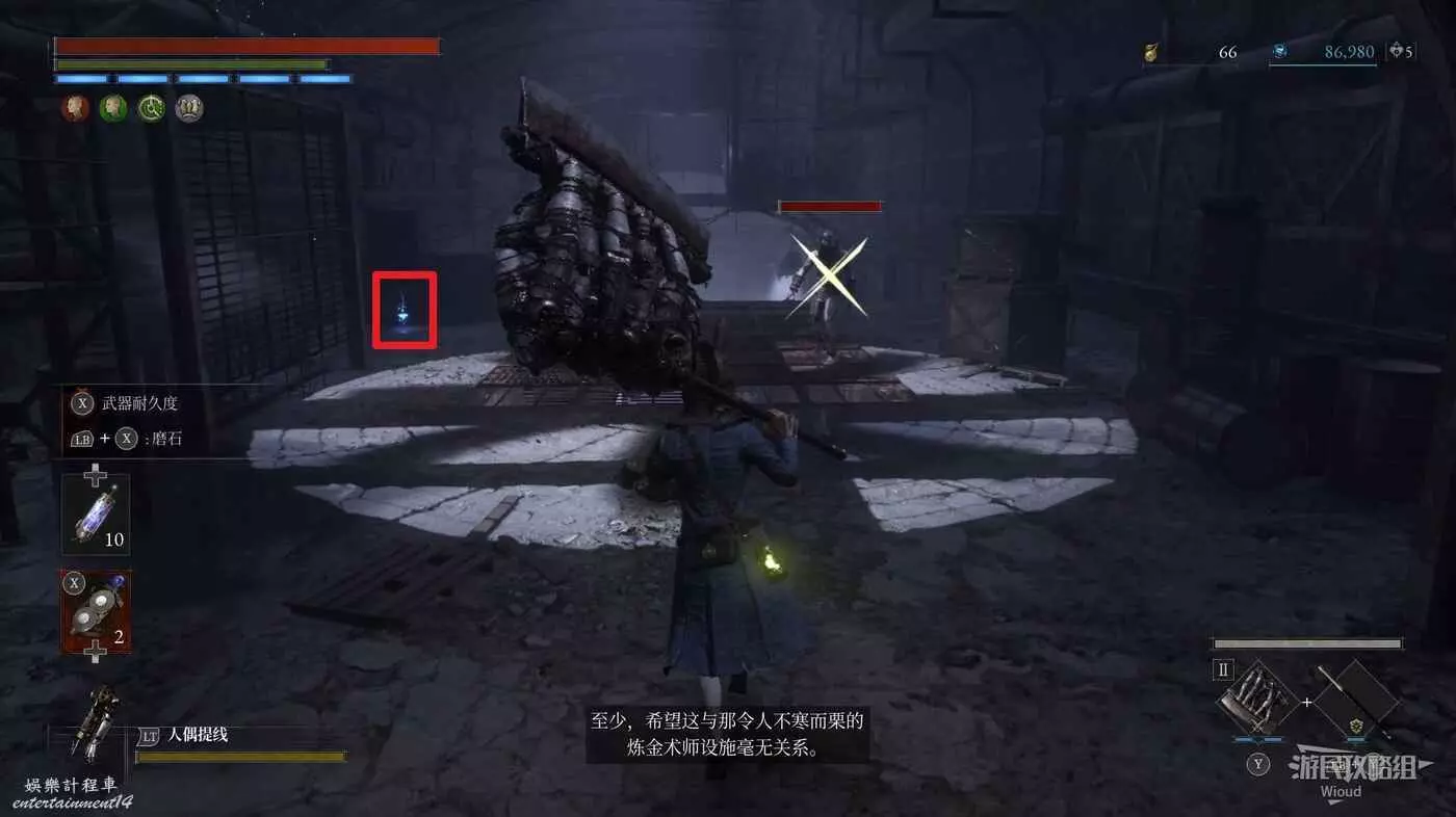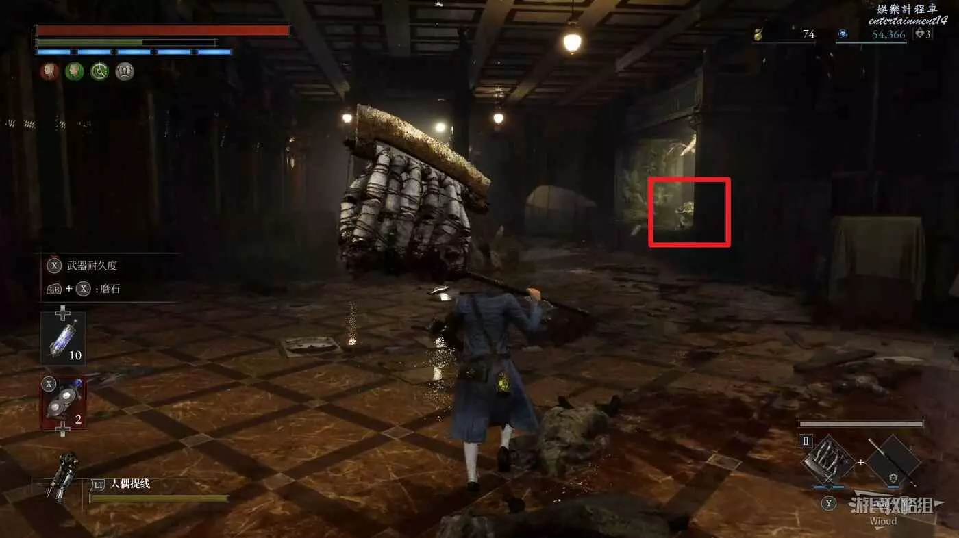 出門繼續貼著左牆往裡走,這裡有個容易被忽略的道具【鉛球】。