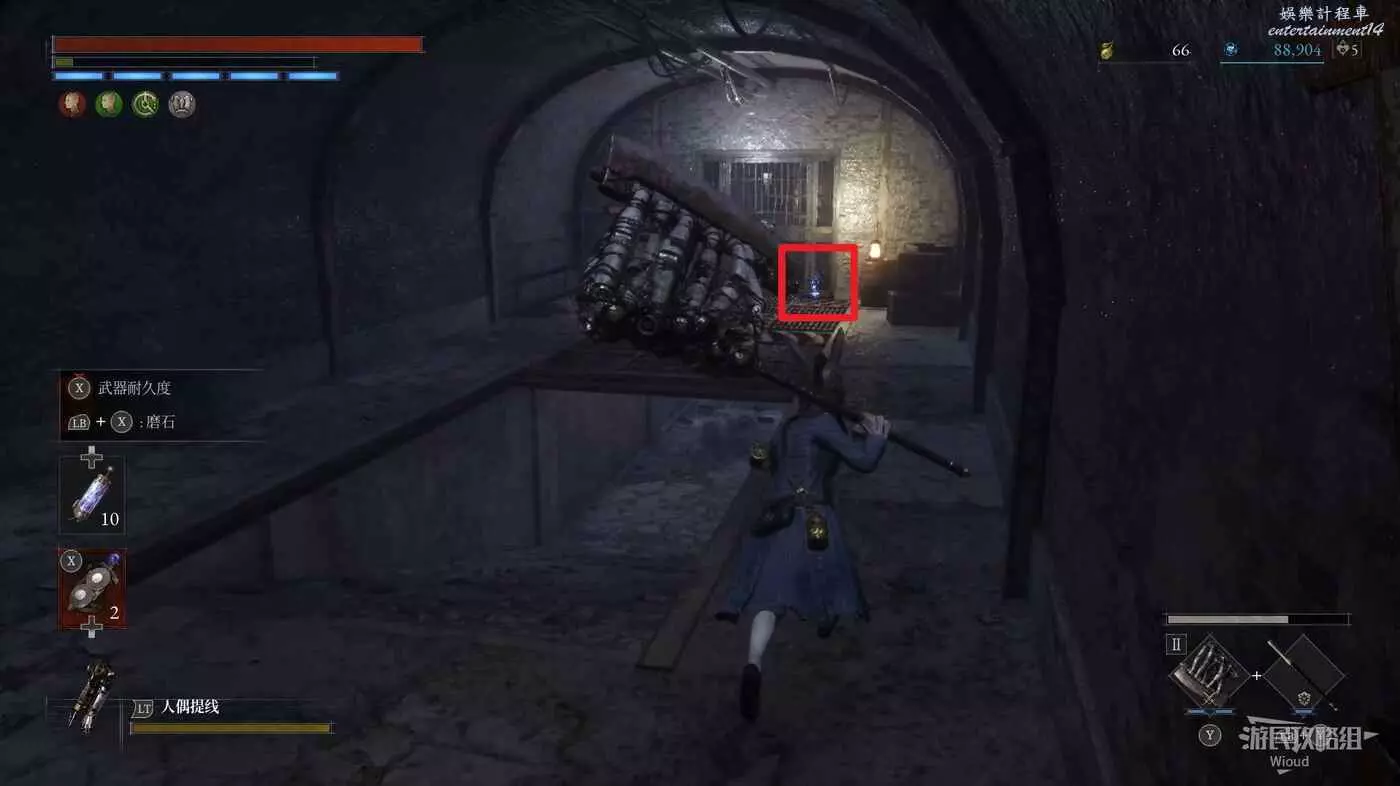 爬罐子腦袋旁邊樓梯,管道內往前走時注意右邊凹口,可撿到【契約暗月月光石】。