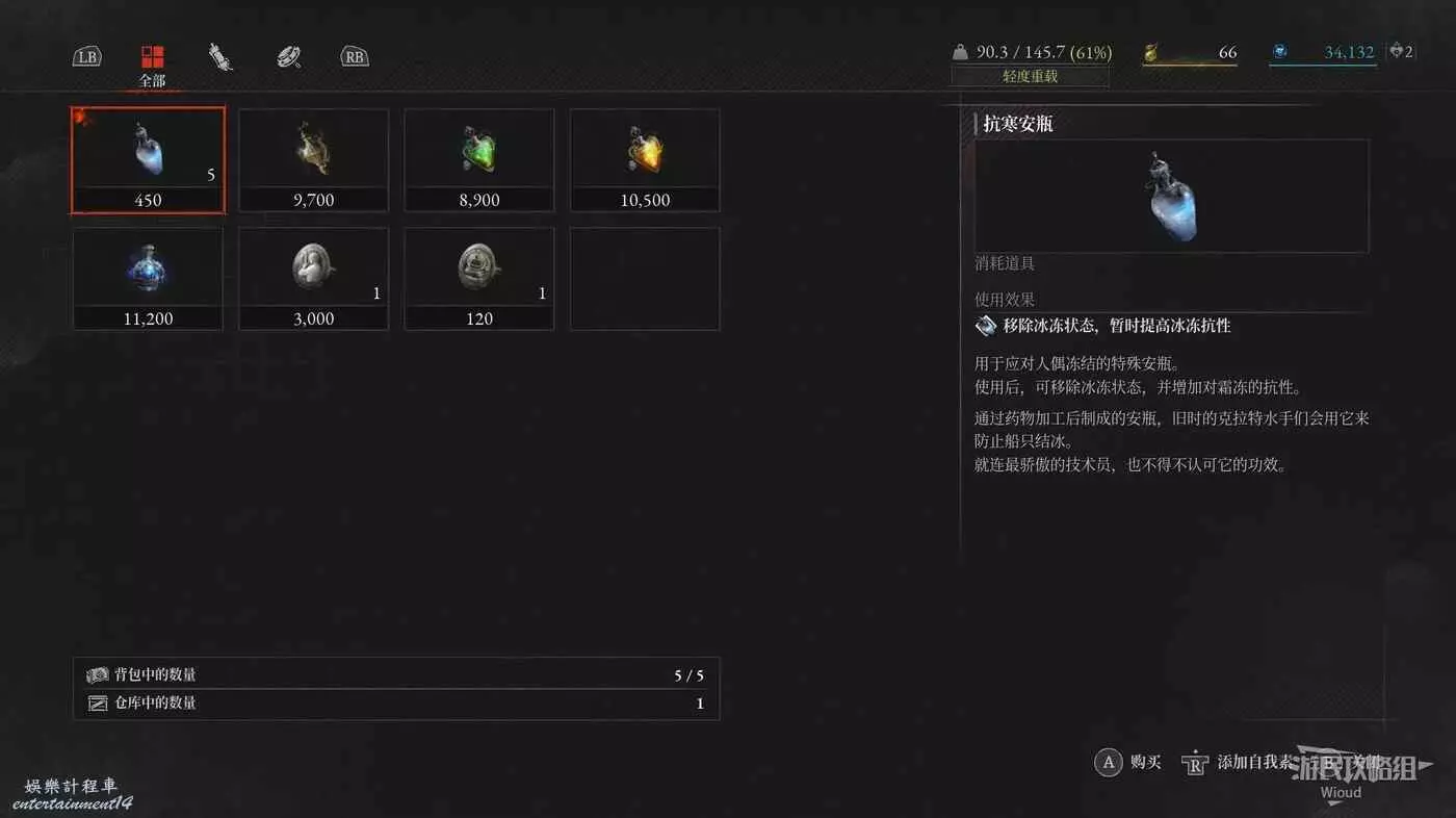 起始點穿過一扇開啟的小門,沿樓梯下去,右側小門處可以撿到一個【屬性抗性安瓶】。