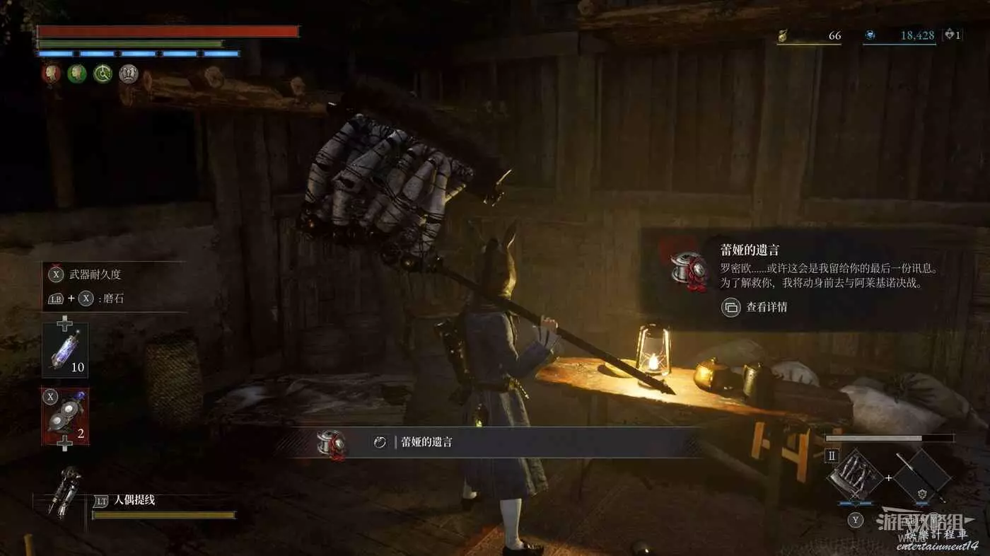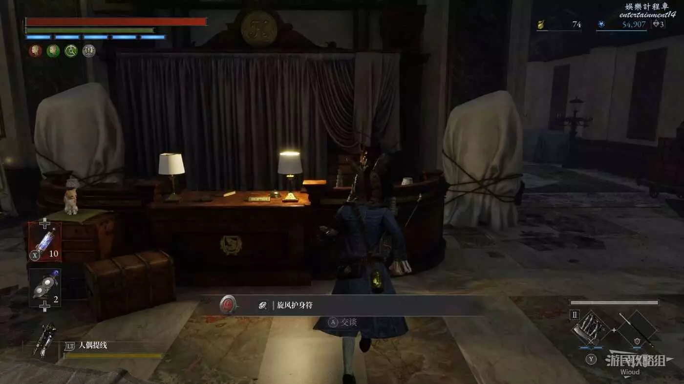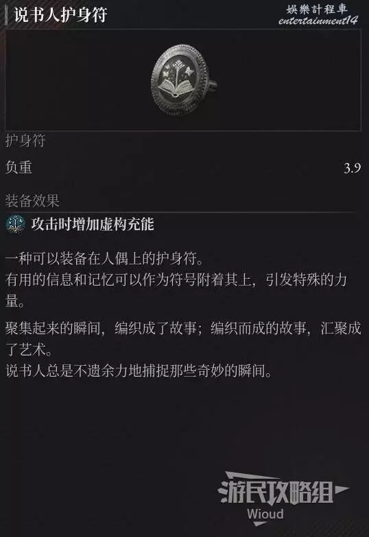 盡頭爬梯子下去有個寶箱,開啟獲得【說書人護身符】。