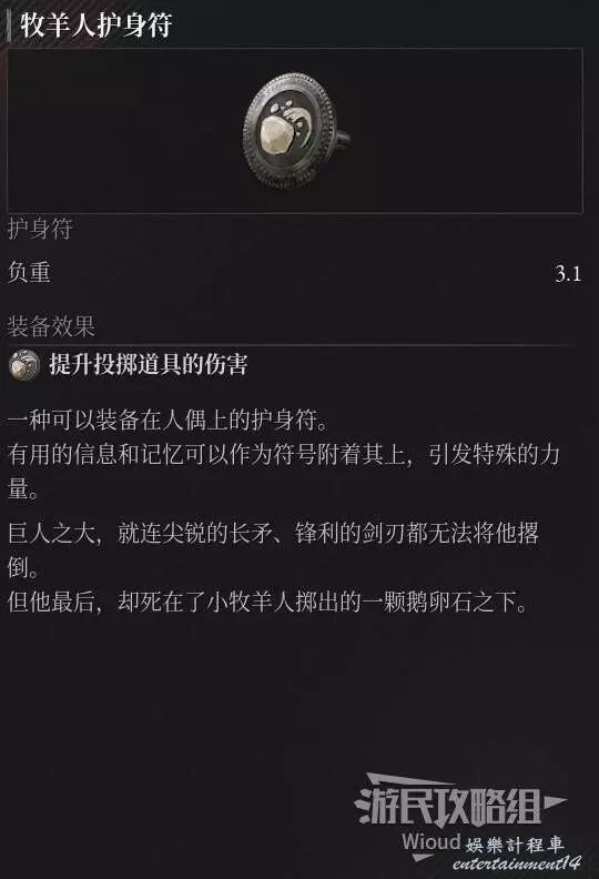 下坡底部破壞右邊的箱子,擊敗另一側的怪物,怪物右側被冰柱擋住的位置可以找到【牧羊人護身符】。