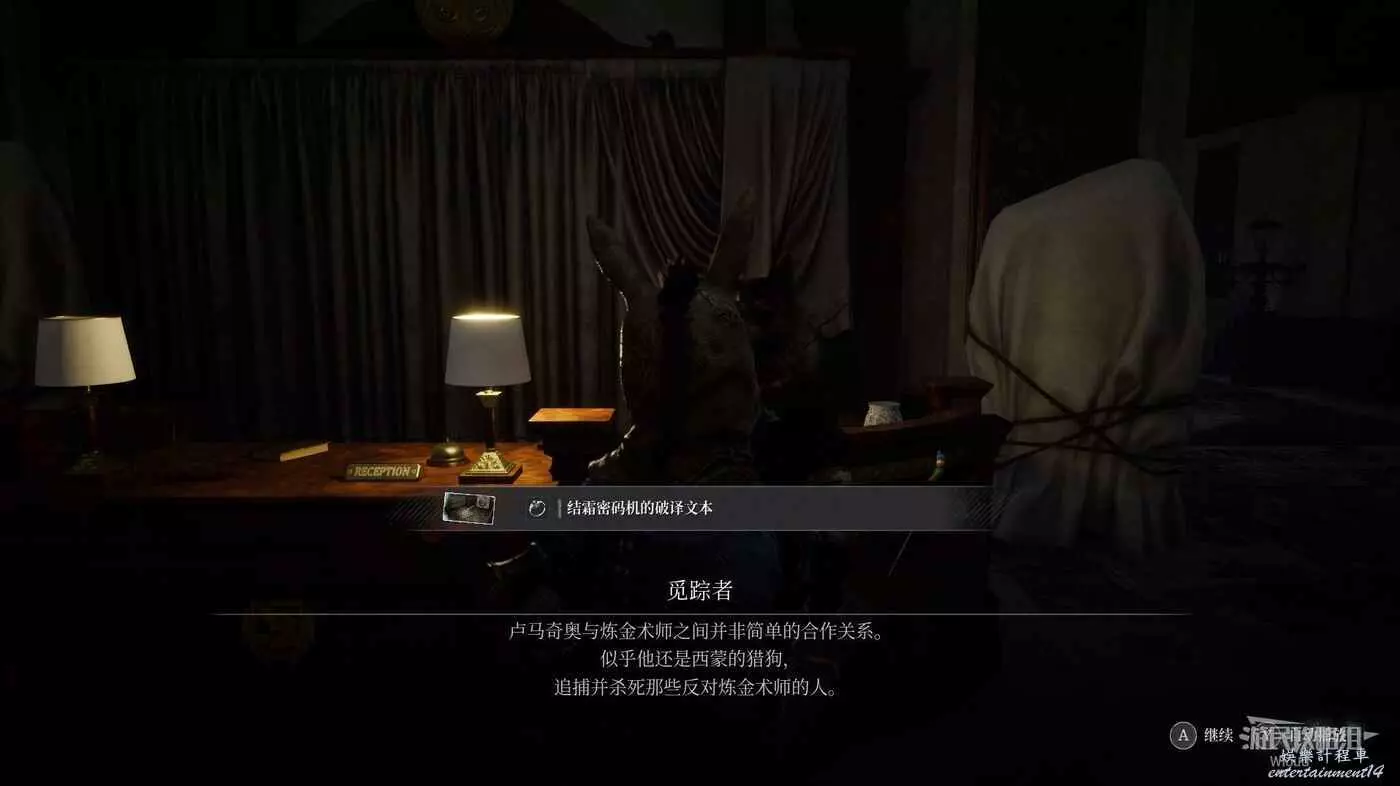 在覓蹤者處獲得【染血密碼機的破譯文本】。