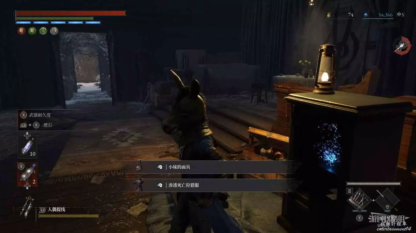 我們將之前從黑洞兔裡拿到的衣服都穿一下,可以獲得收藏品和一個黑洞兔鑰匙,保險箱裡可以獲得服裝【小妹的面具】與【滲透死亡狩獵服】。