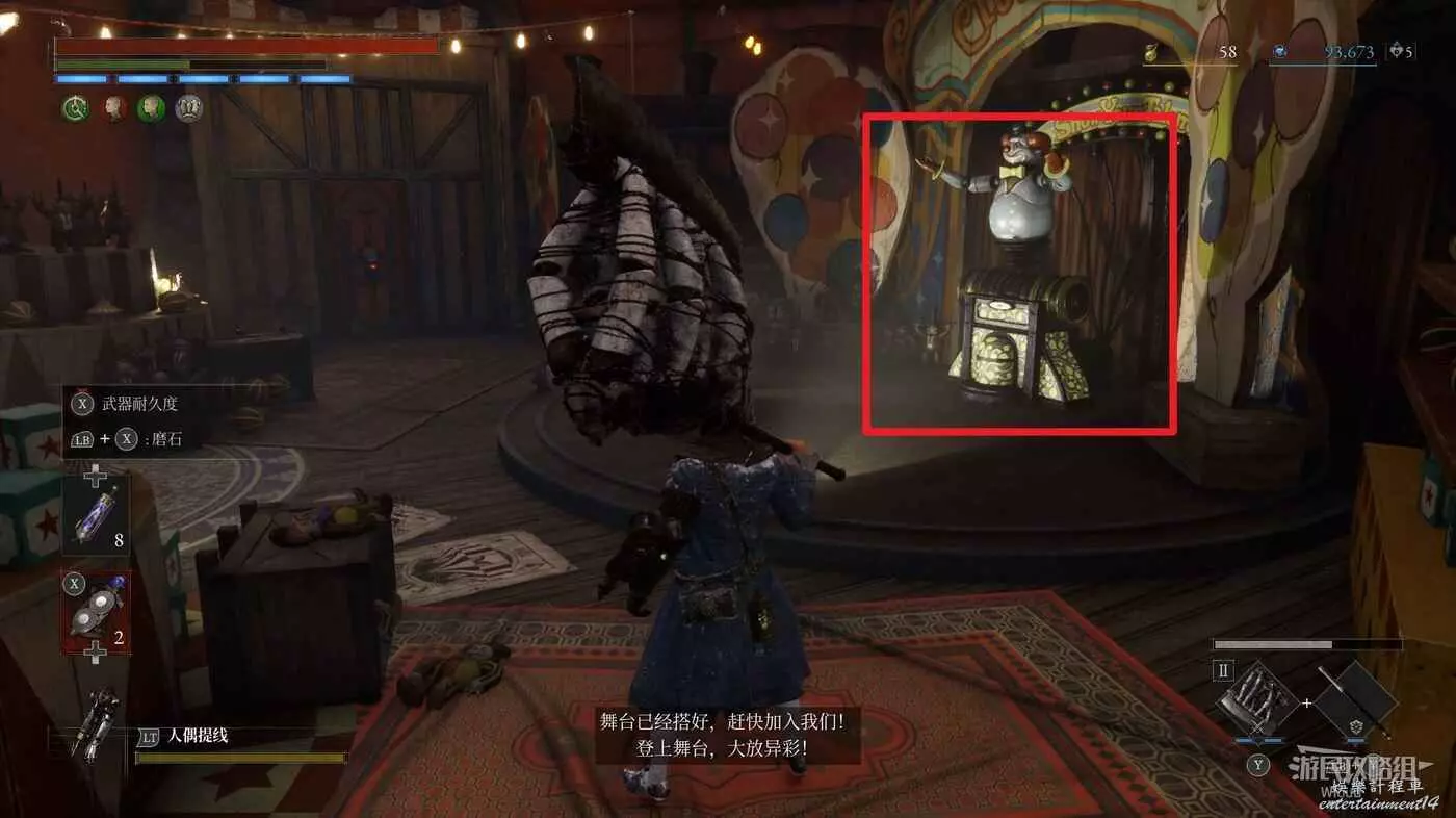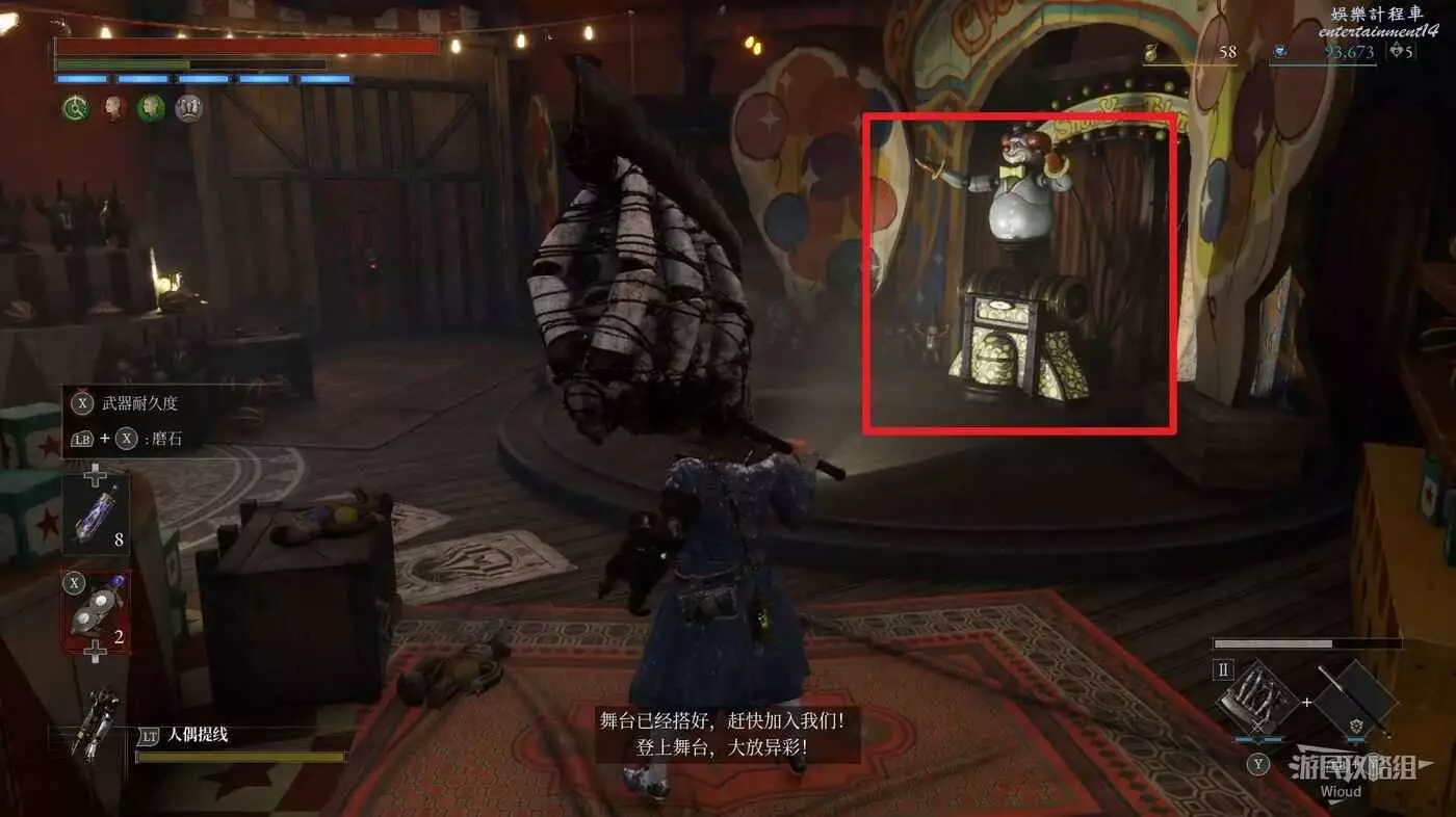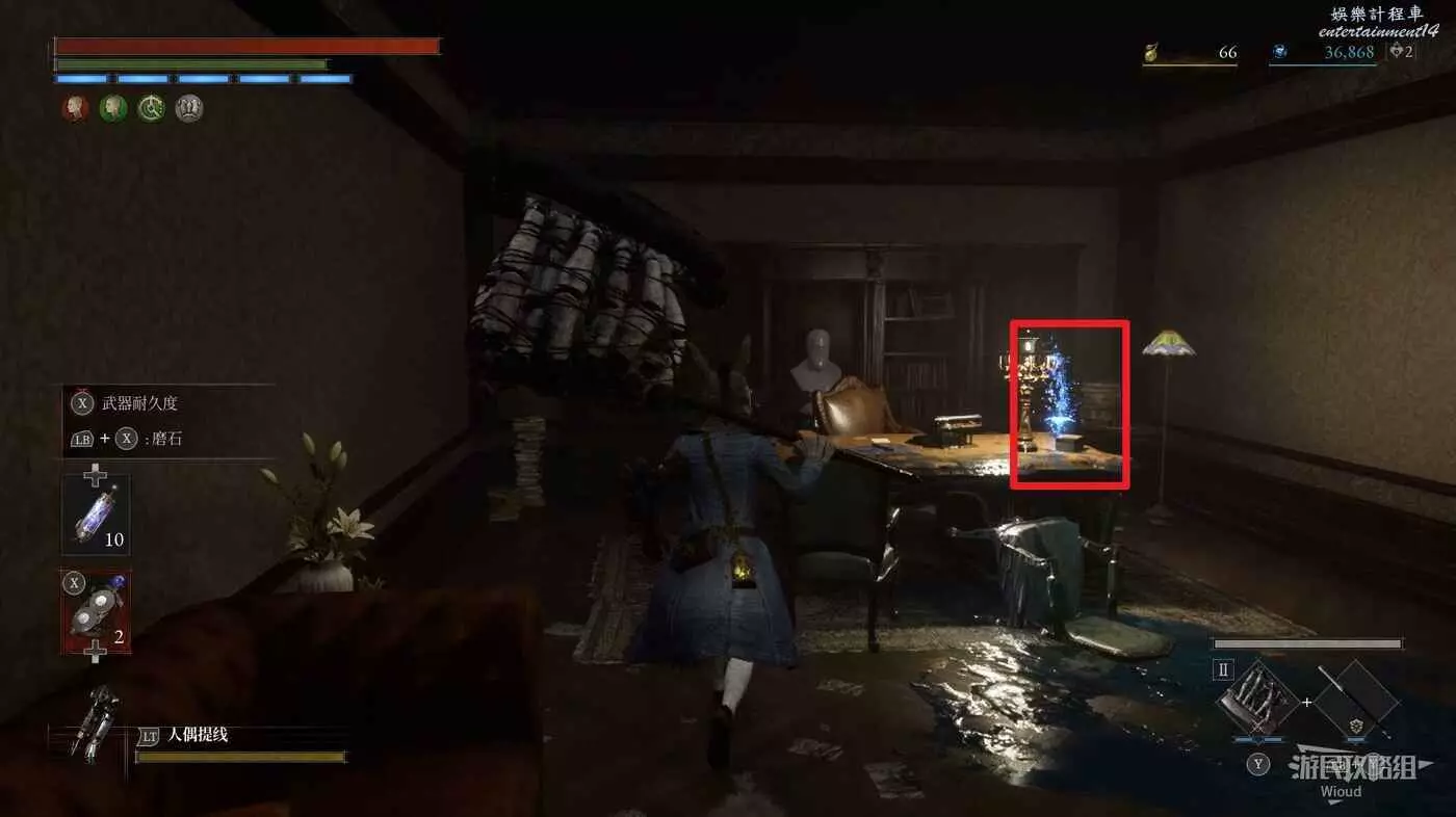 傳送到第一章【篝火】狂亂花園,進入遊樂園往左走,進入右邊房間。