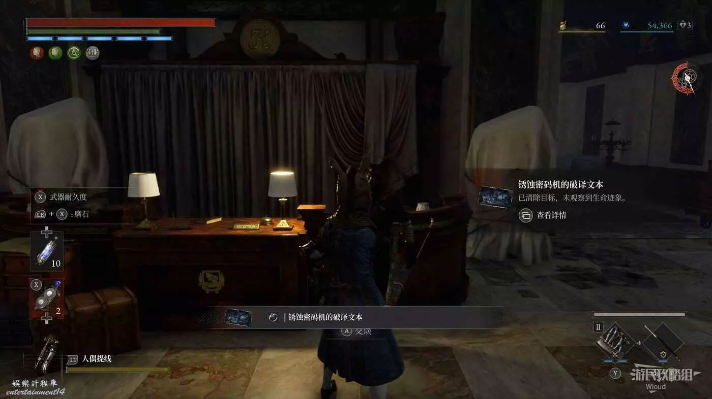 來到遺忘失控的暮色克拉特酒店,與大廳的覓蹤者對話即可得到密碼機內藏的線索。