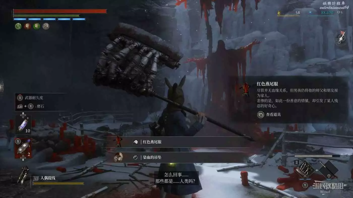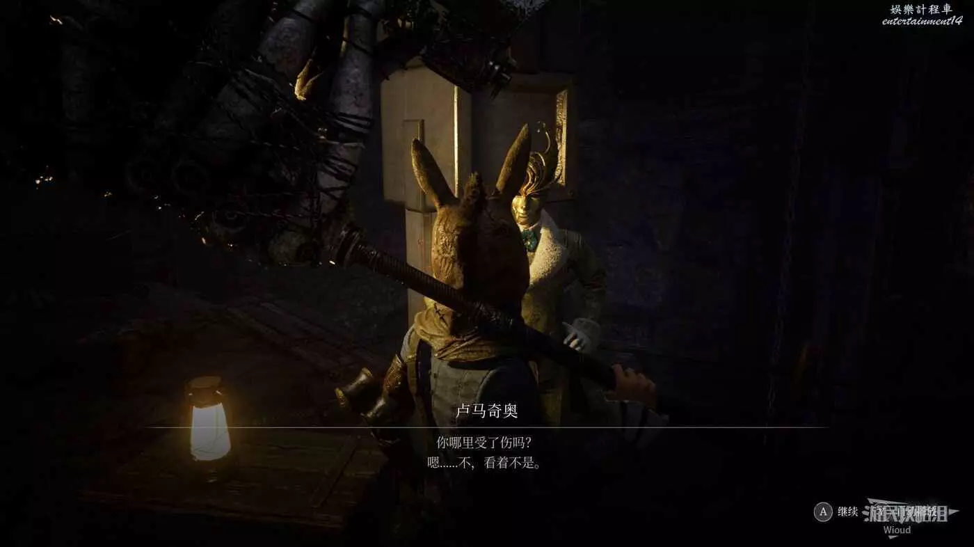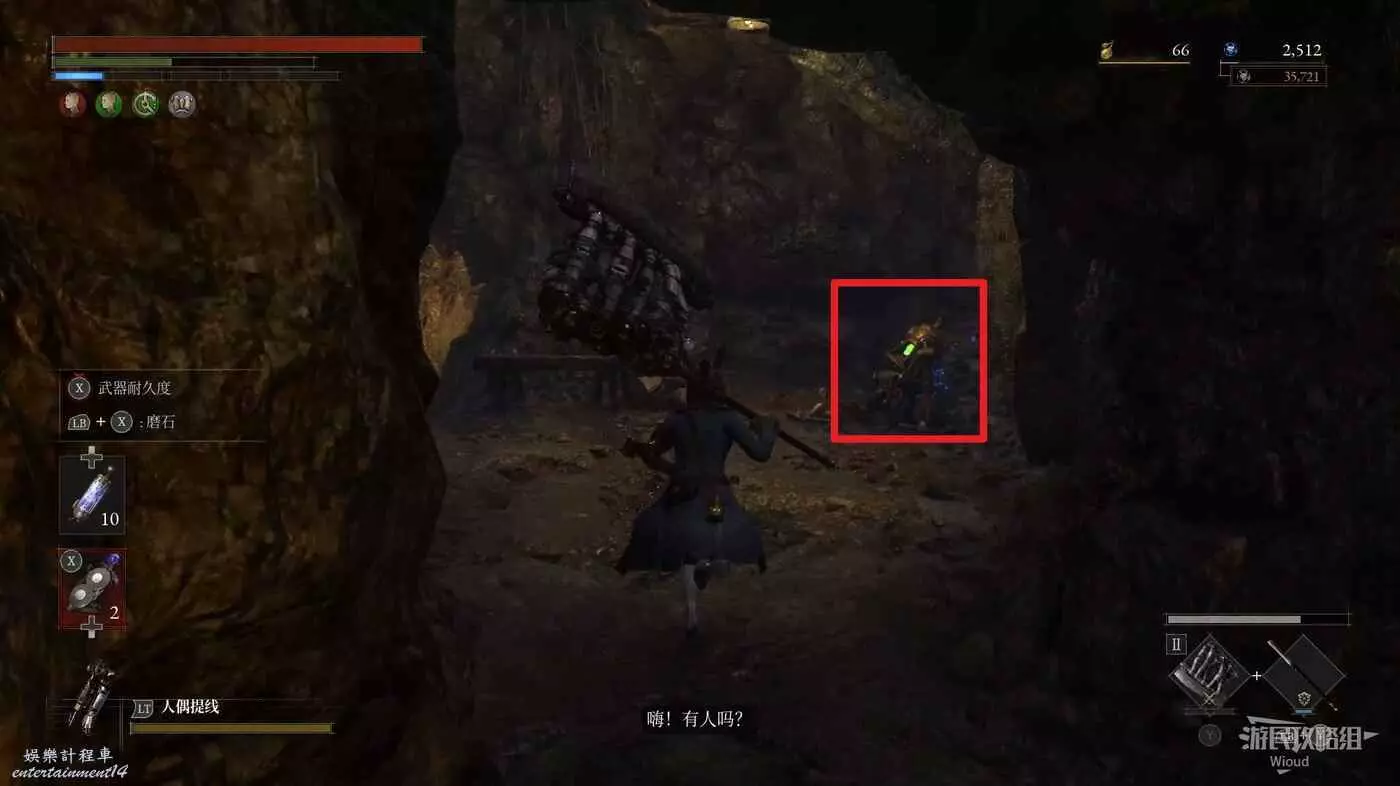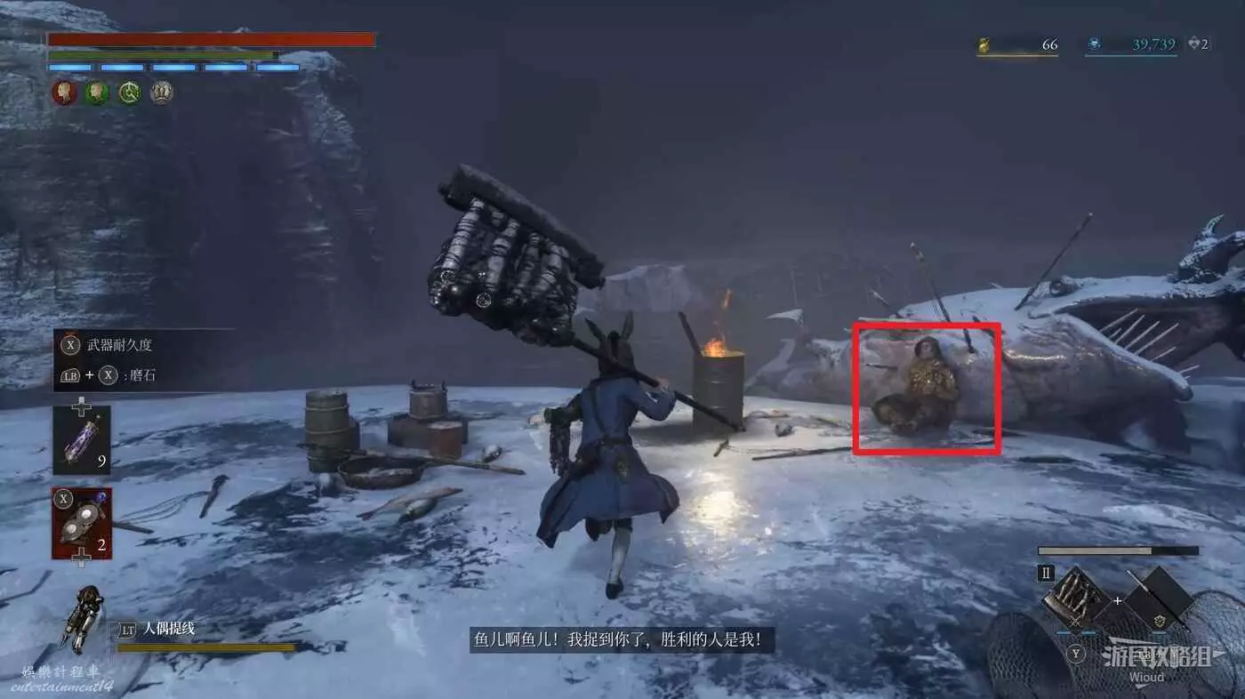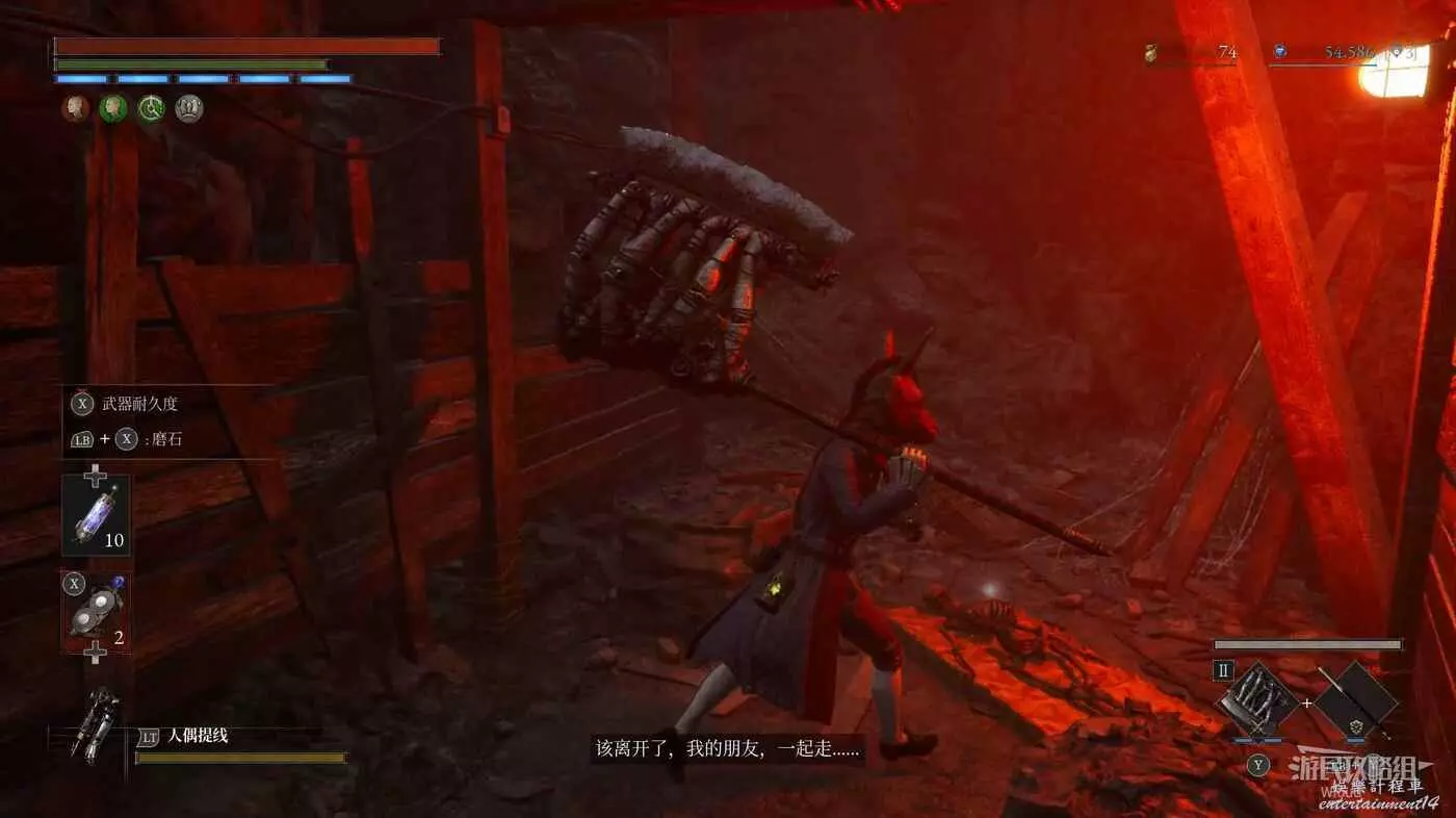 進入BOSS破冰出來的洞穴,爬裡面的梯子到高層,走到拐角處與地面的人偶對話被警告。
