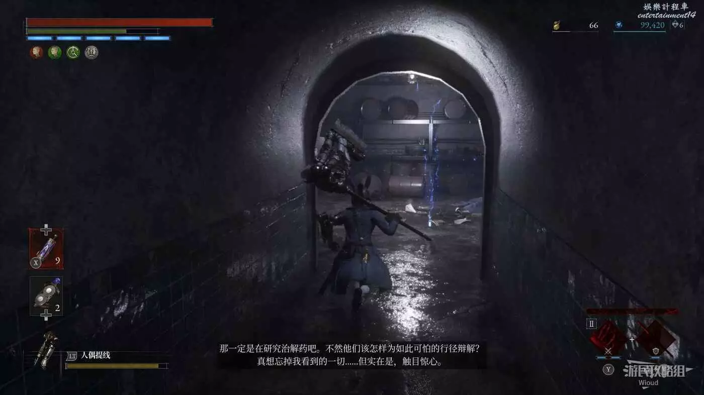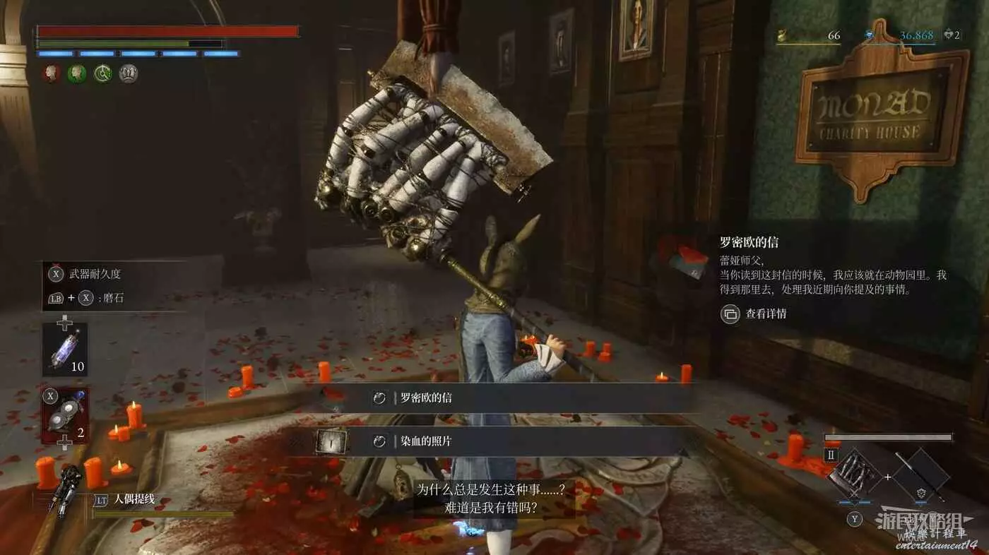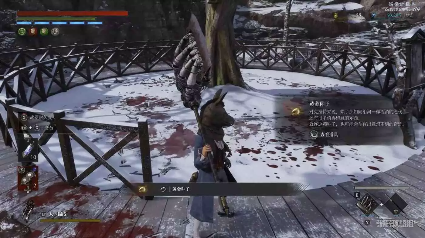 此篝火左邊就是最終BOSS的房間,此時還有一些東西沒搞完,明天10號將更新三個密碼機的解謎、補充盲人畫家支線、補充狂歡花園處落下的【冬眠+1】護身符等,建議小夥伴先推到這裡!