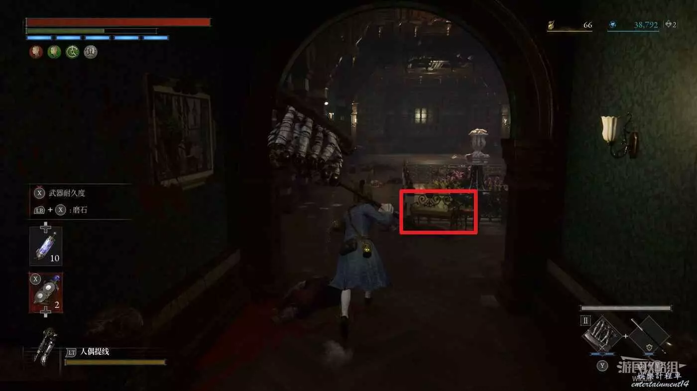 進入暗門後的走廊,使用鑰匙解鎖盡頭的房間並啟動最後一個篝火【玫瑰花園入口】。