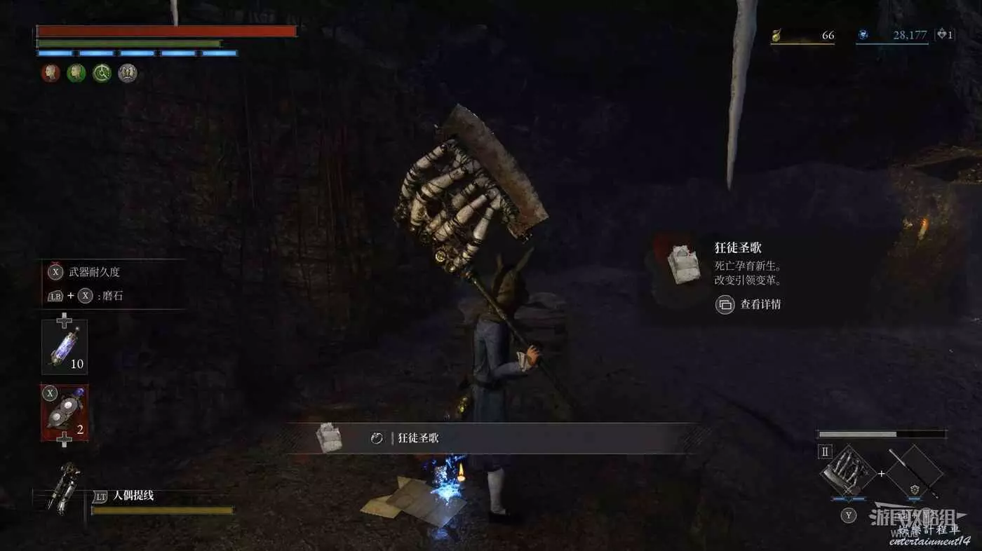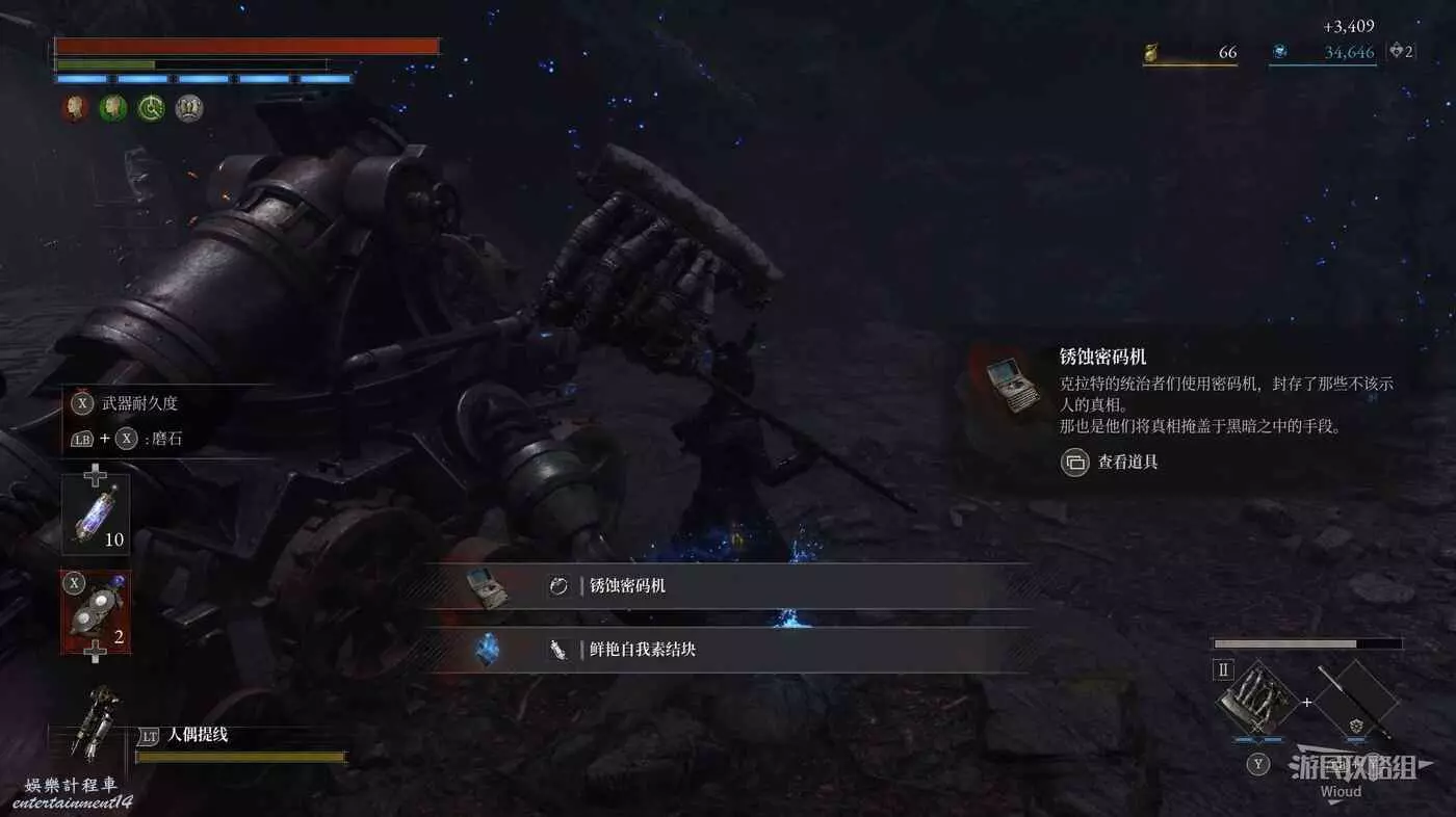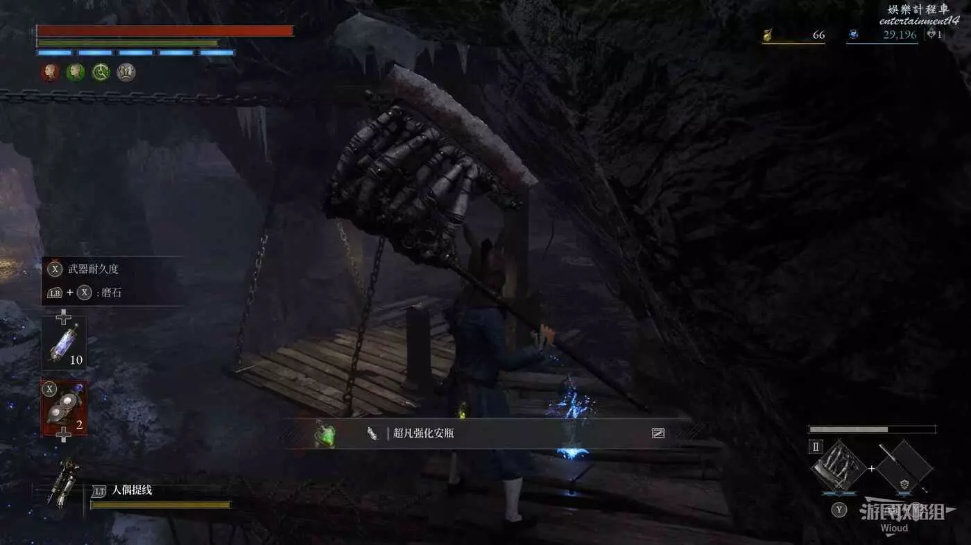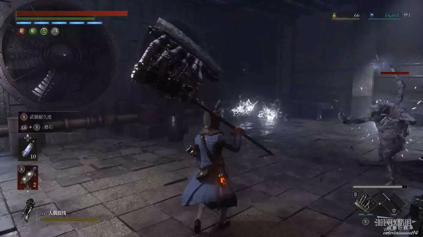 開啟此篝火旁邊的大門開啟與【死亡控偶師瑪奇奧娜的戰鬥】,將其擊敗可獲得【恐怖控偶師的自我素】以及【瑪奇奧娜的鑰匙】,原地啟動篝火【瑪奇奧娜的鳥籠】