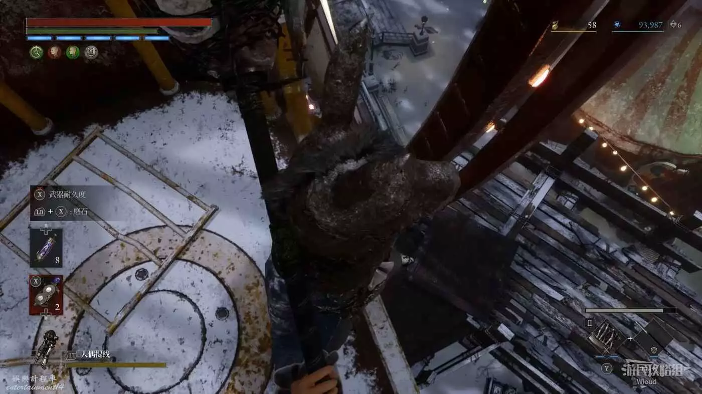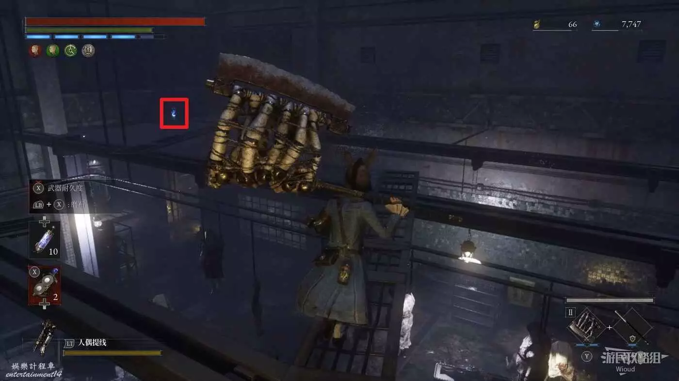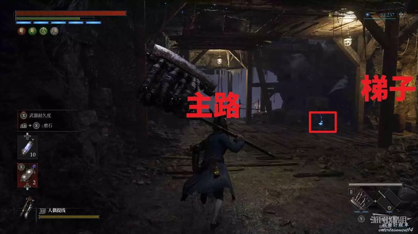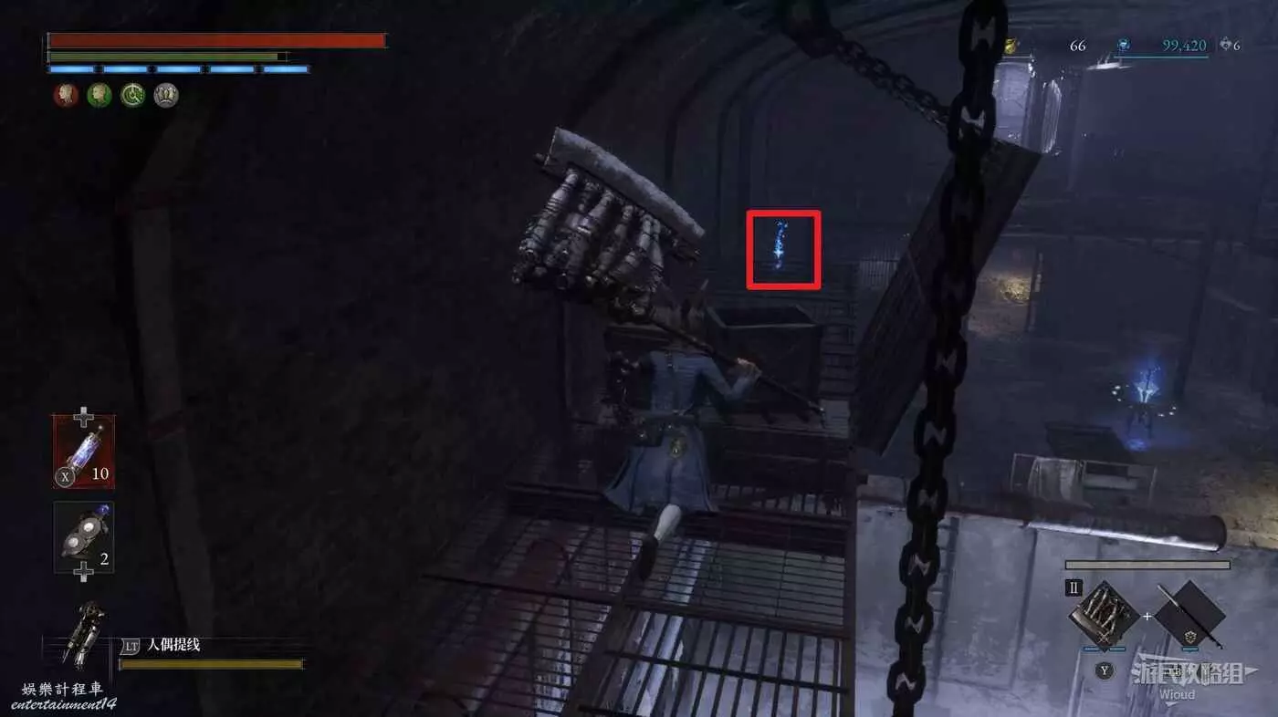 回到高層梯子處往右走,中間會遇到一個向上的梯子,先無視繼續往前走。
