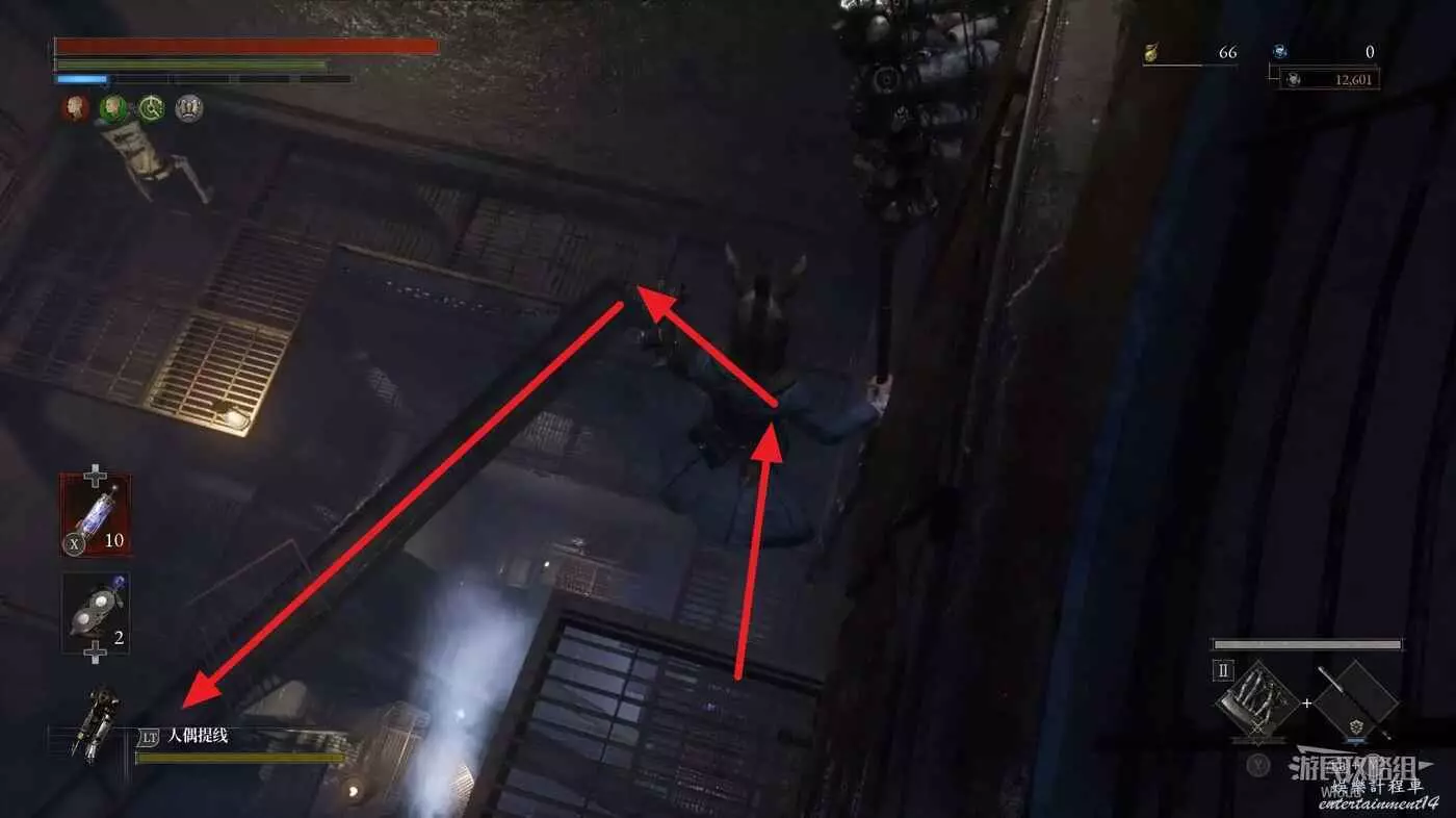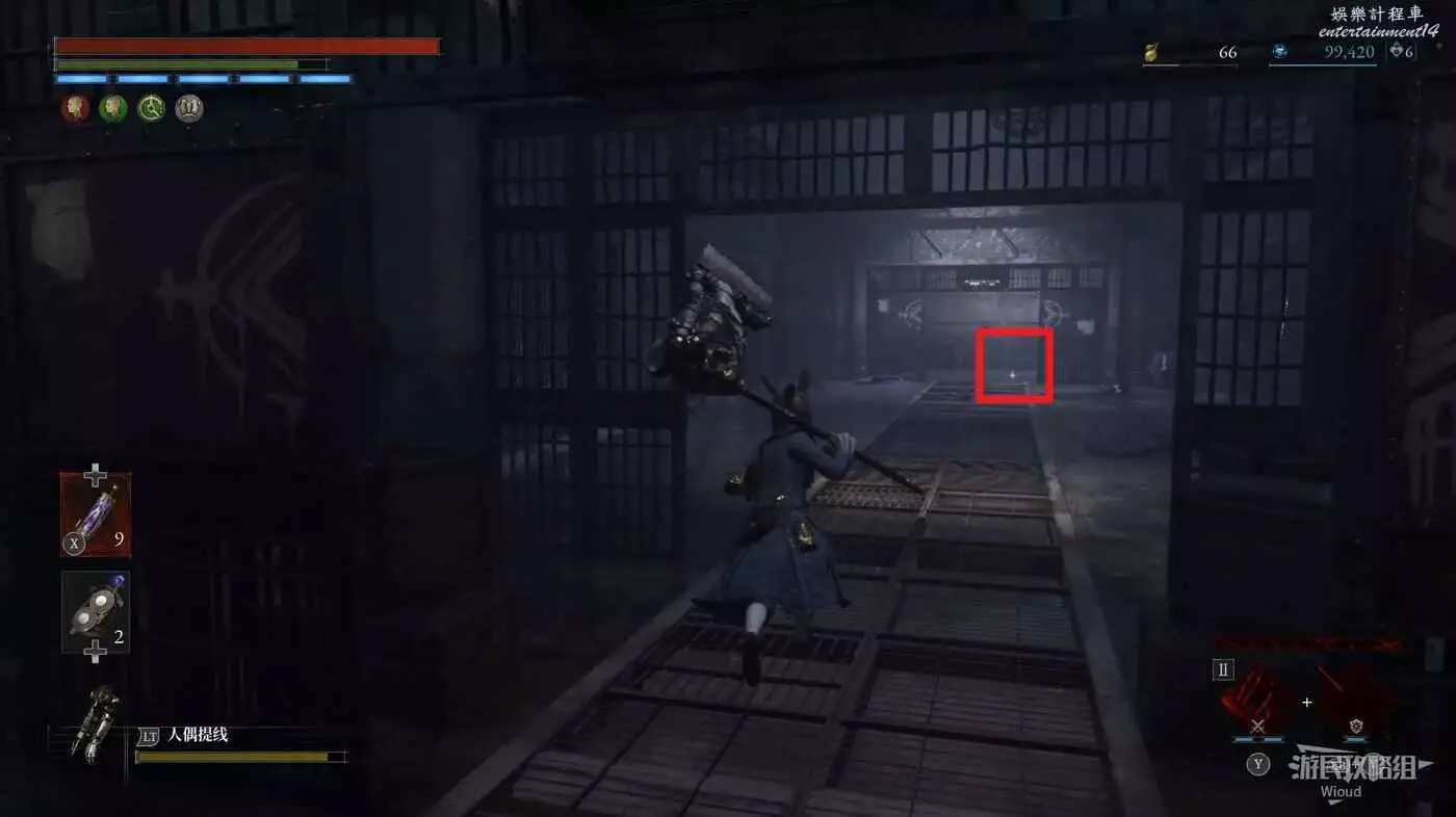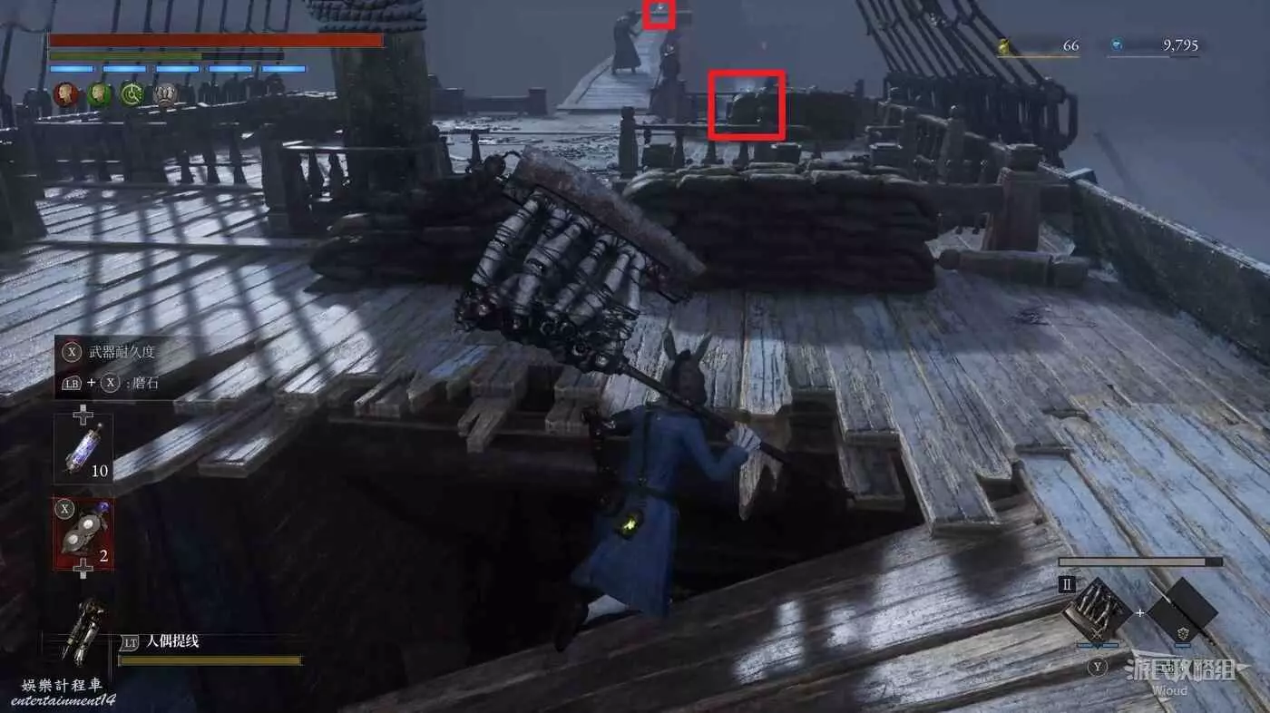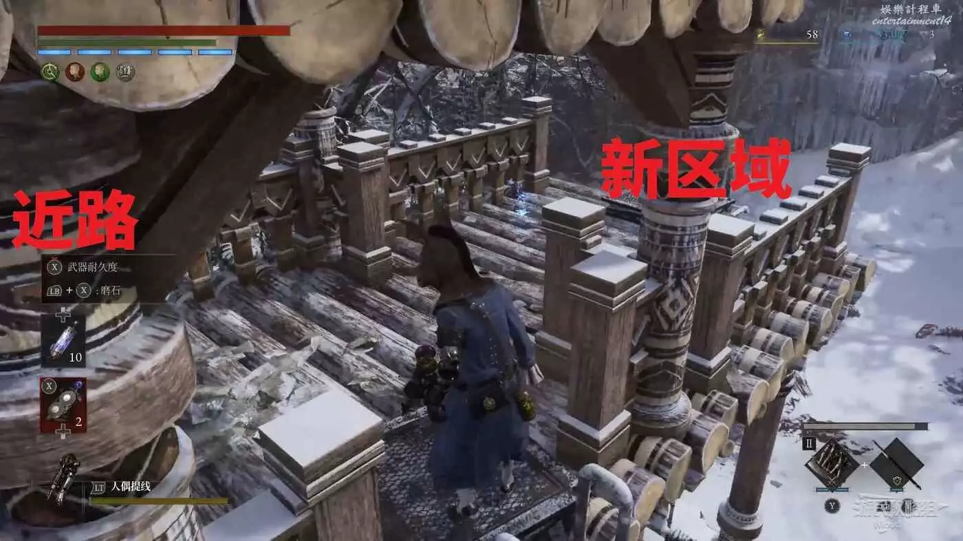 回到高層梯子處往右走,中間會遇到一個向上的梯子,先無視繼續往前走。