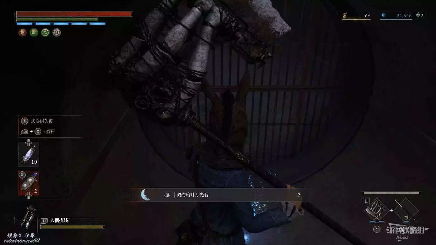 爬通往新區域的梯子往下走,此處會觸發與第一個BOSS【殘暴掠食者】的戰鬥,將其擊敗可獲得一個【滿月月光石】。