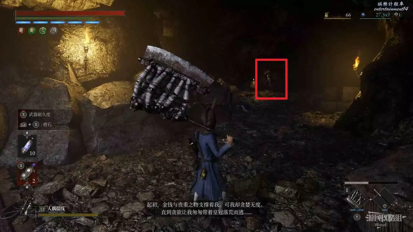 繼續朝左往深處走,遇到一個背著貨物的精英怪,它身後可以撿到重要道具【狂歡幣】。