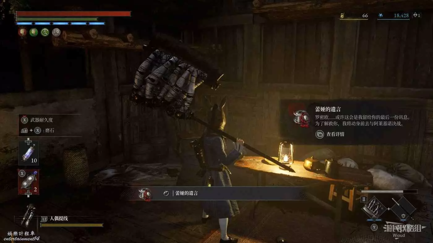 繼續往下走一段看到一個木頭馬車,清理周圍的敵人再沿路往下走一小段可以看到木箱旁有道具點,靠近拾取可獲得收藏品【馬戲團員工的信】。
