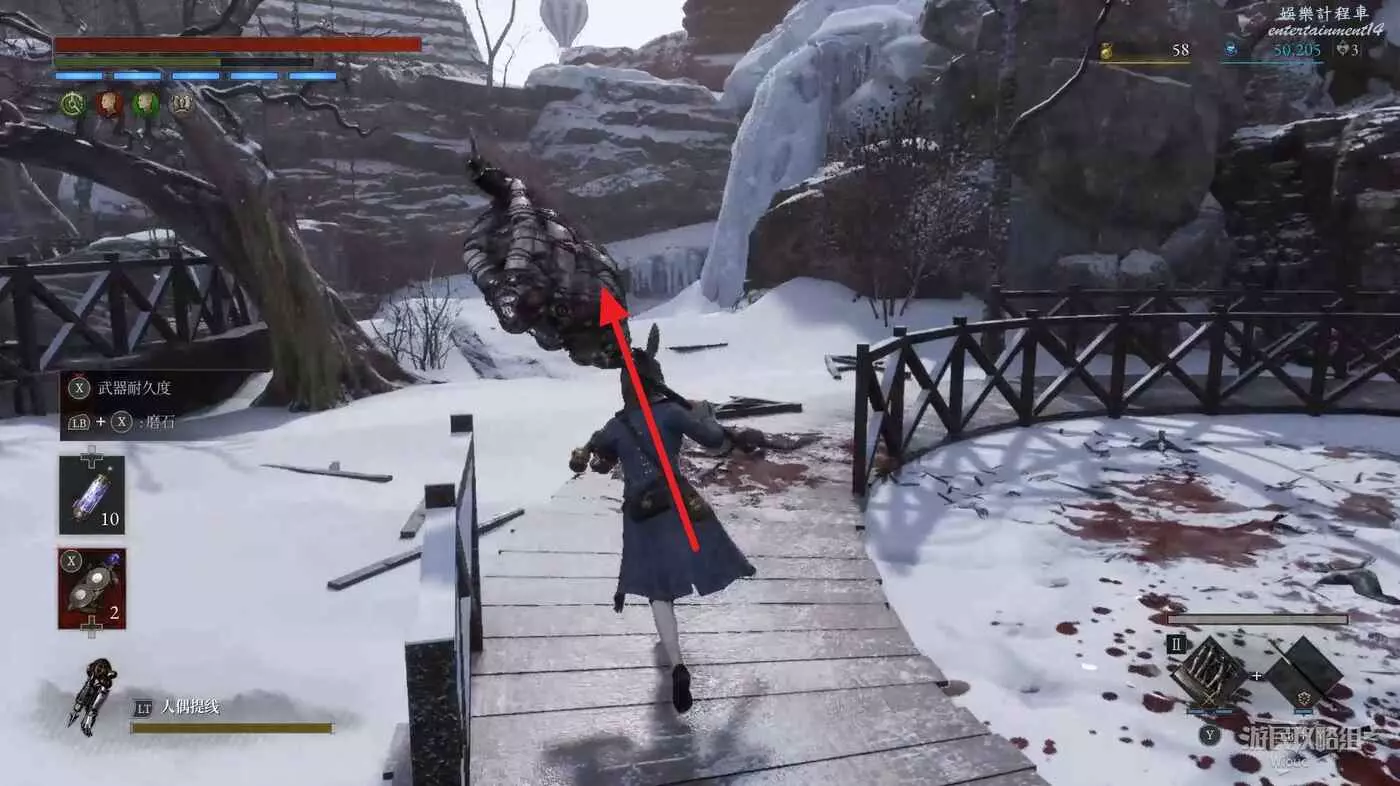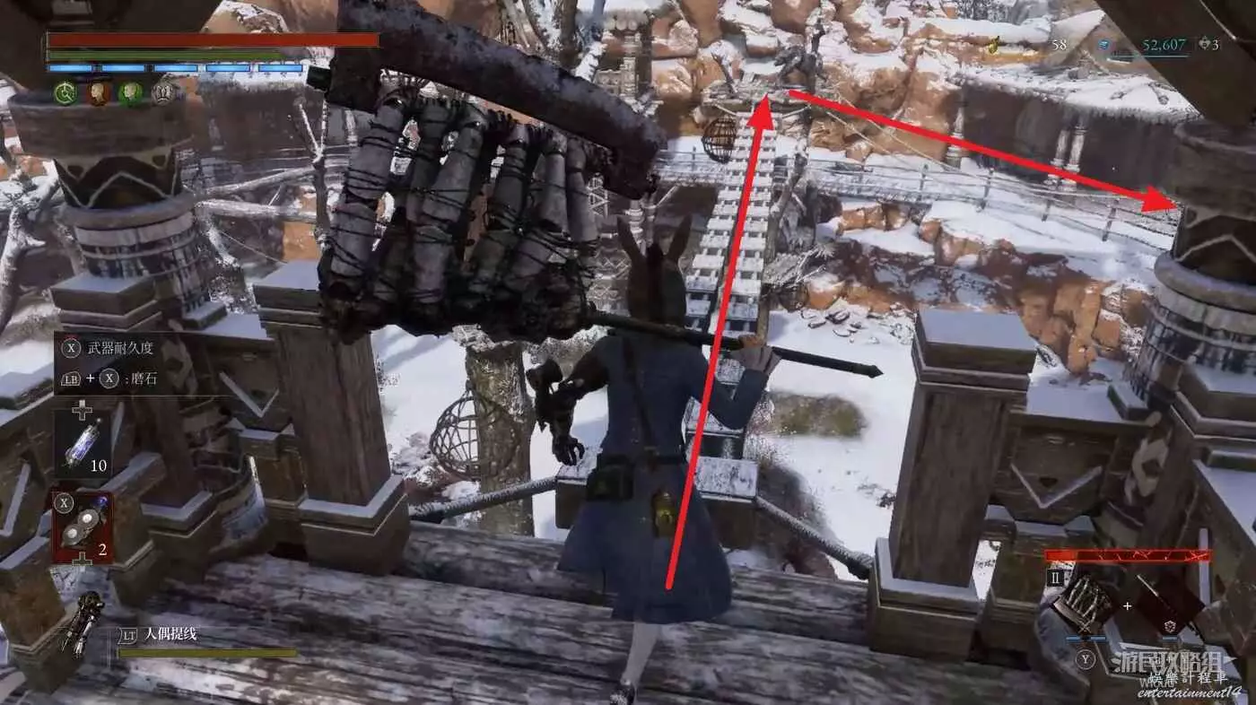 同樣位置往右看,擊敗斷橋下面的敵人,走到盡頭。
