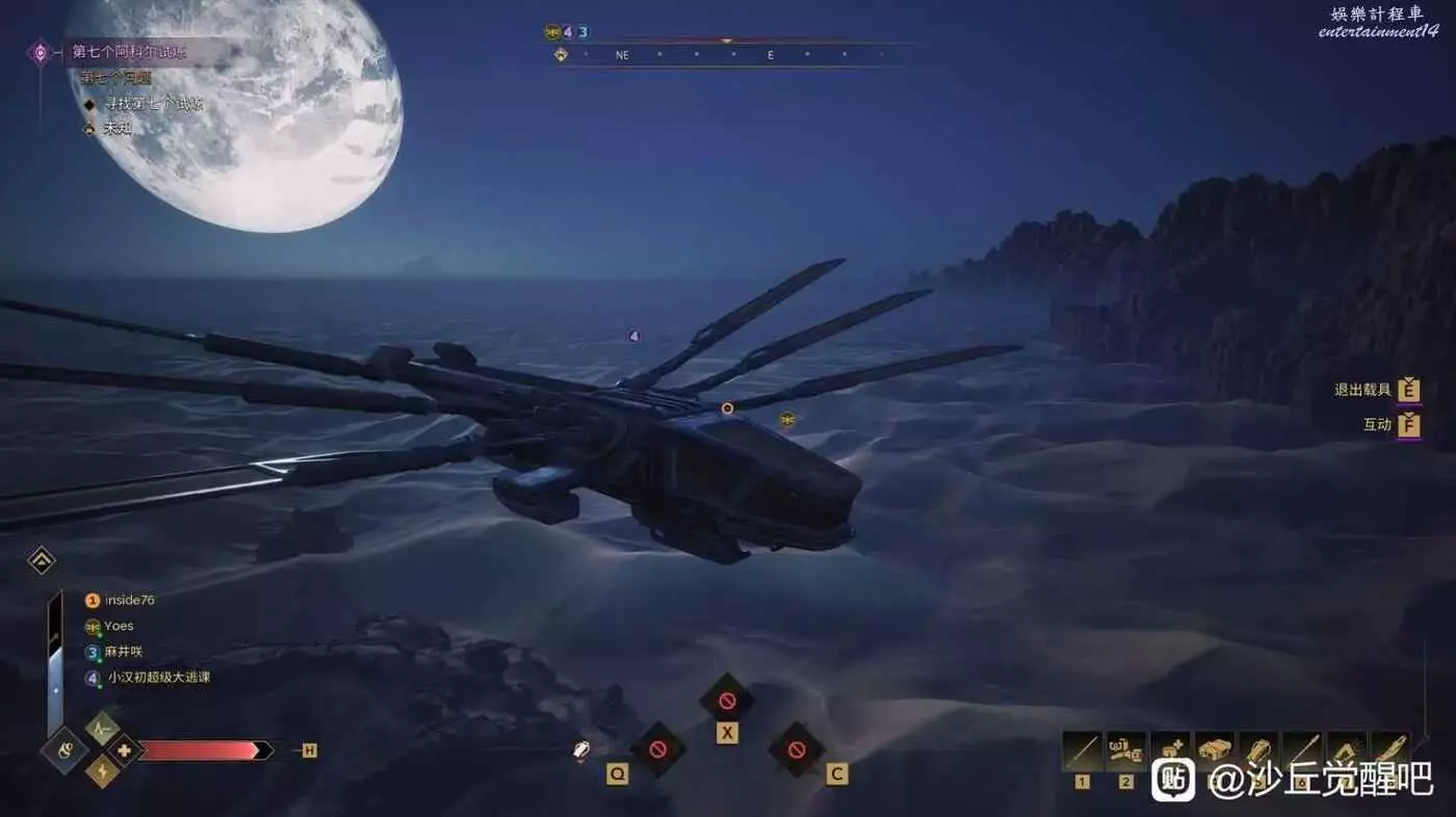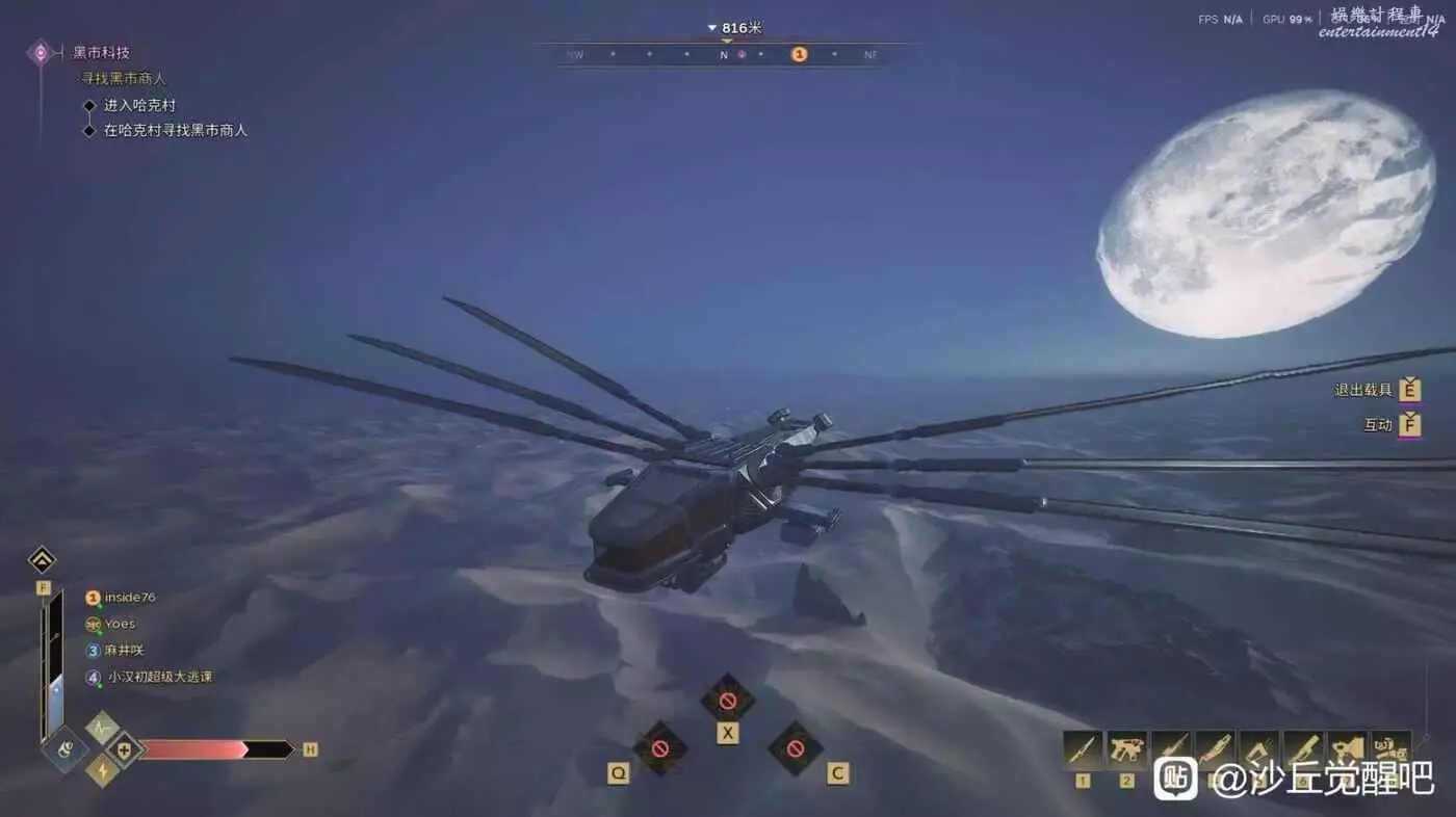 進入腹地的方式很簡單。在新手地圖一直往北飛。遇見空氣牆。就會觸發旅行提示。而進入沙漠腹地的前提是必須要擁有飛行載具,也就是撲翼機。