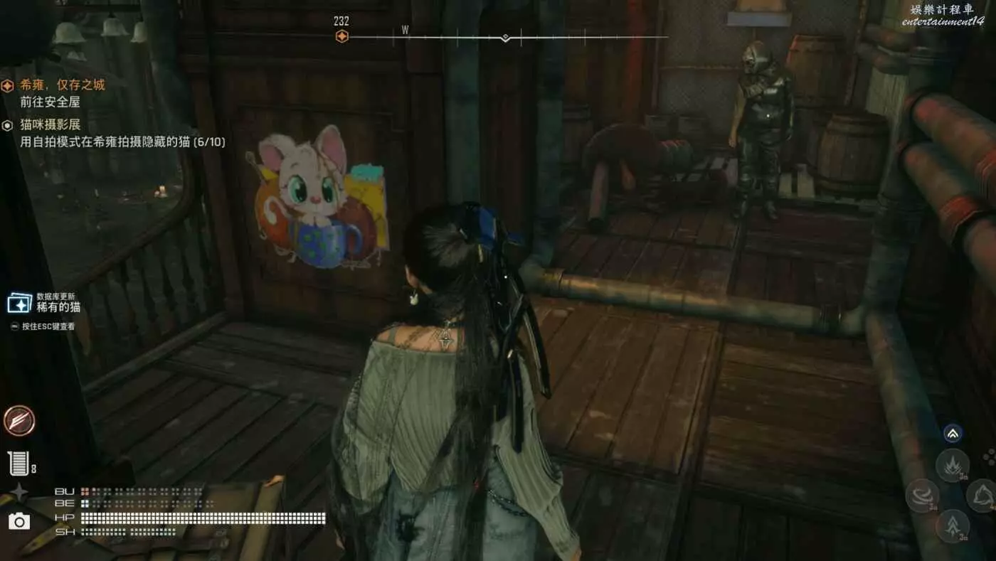 劍星 (Stellar Blade) 貓咪照片位置一覽 17 6 月 2025-06-17 廣告 作者:幻靈baka 來源:bilibili 總覽圖如下 1.活潑的貓 2.稀有的貓(在下方酒吧入口的牆上) 3.豔麗的貓 4.可愛的貓(隧道上方的管道上) 5.優雅的貓(在橋下 從滑索下去) 6.珍貴的貓 7.歡樂的貓 8.純真的貓 9.神秘的貓 10.睡覺的貓(在飛船冰箱的後面)