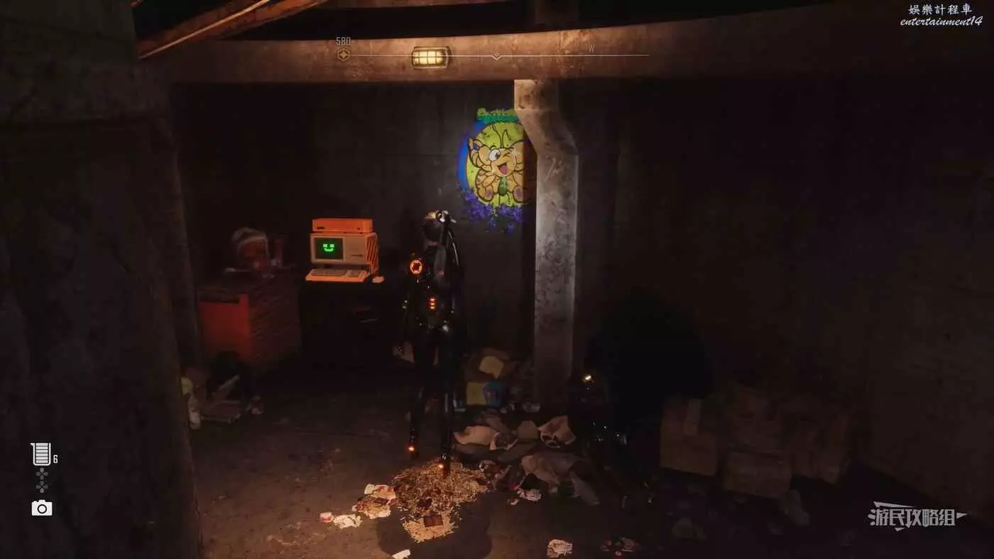 在廢土東南角被水淹沒的區域,沿著左側樓梯往上走,到達頂部附近可以看到有幾個被防水布罩住的箱子,防水布上可以看到這隻蝴蝶。