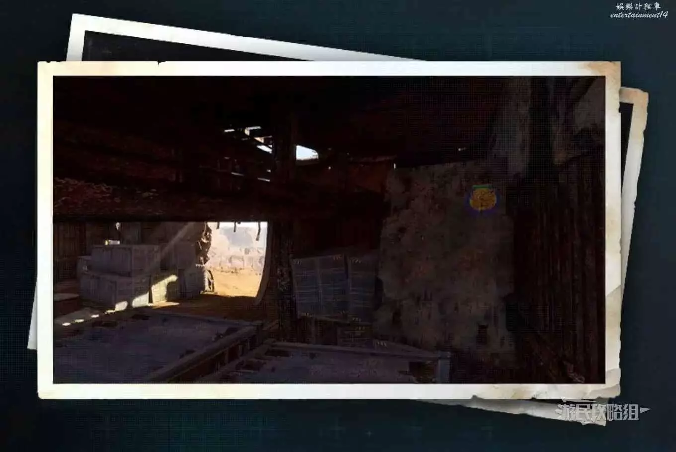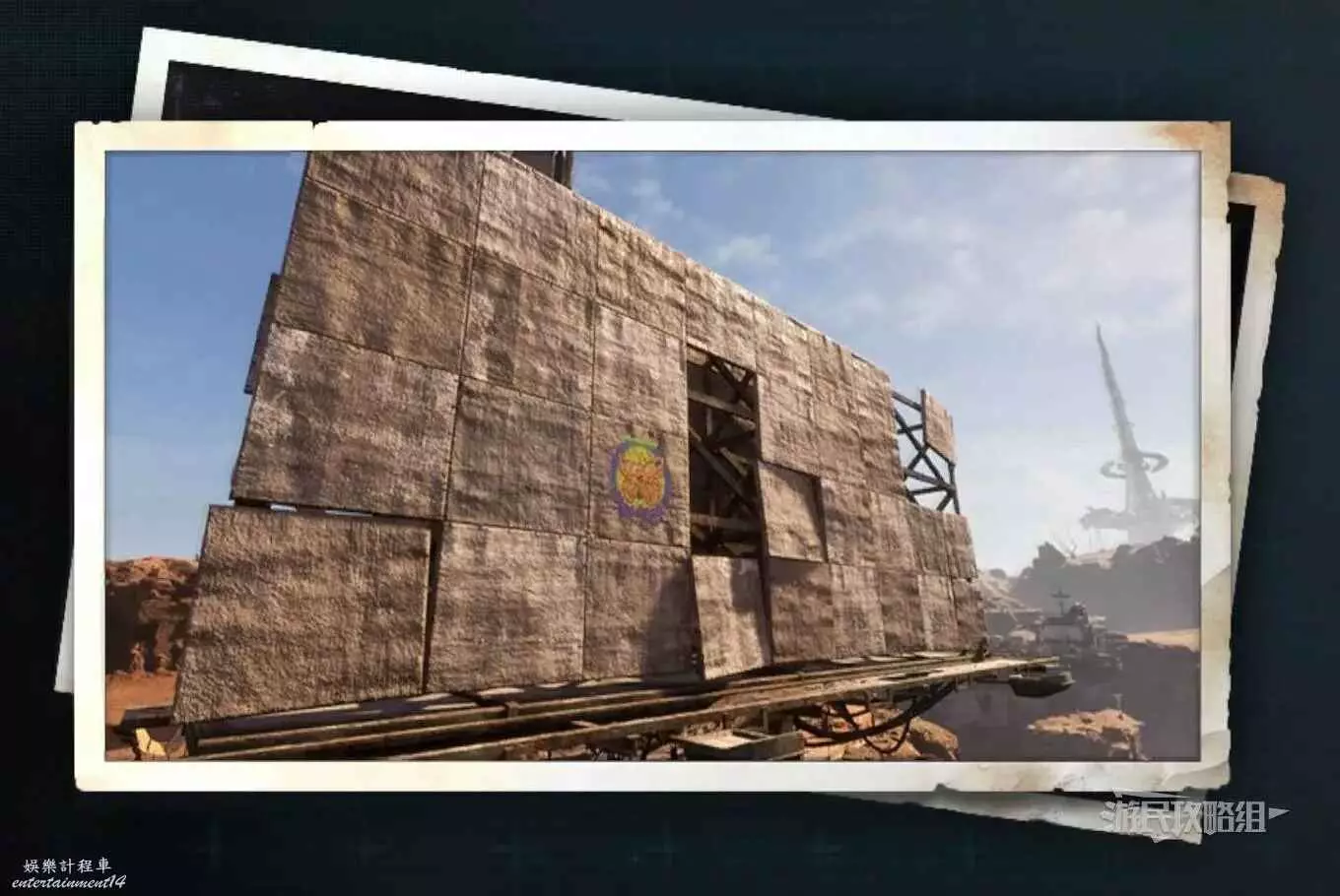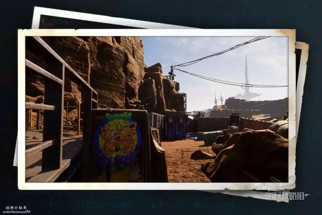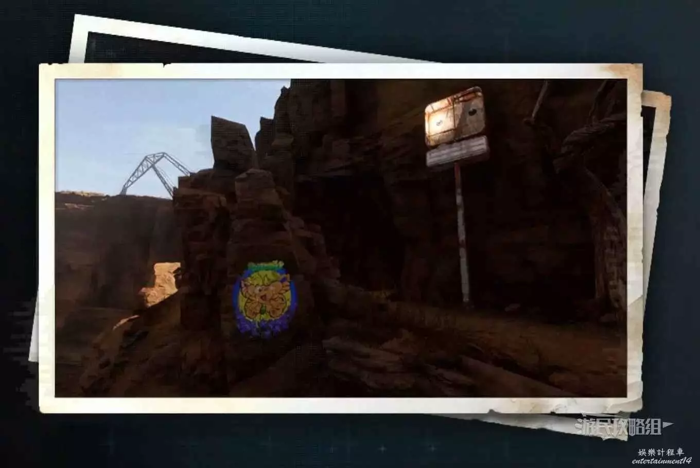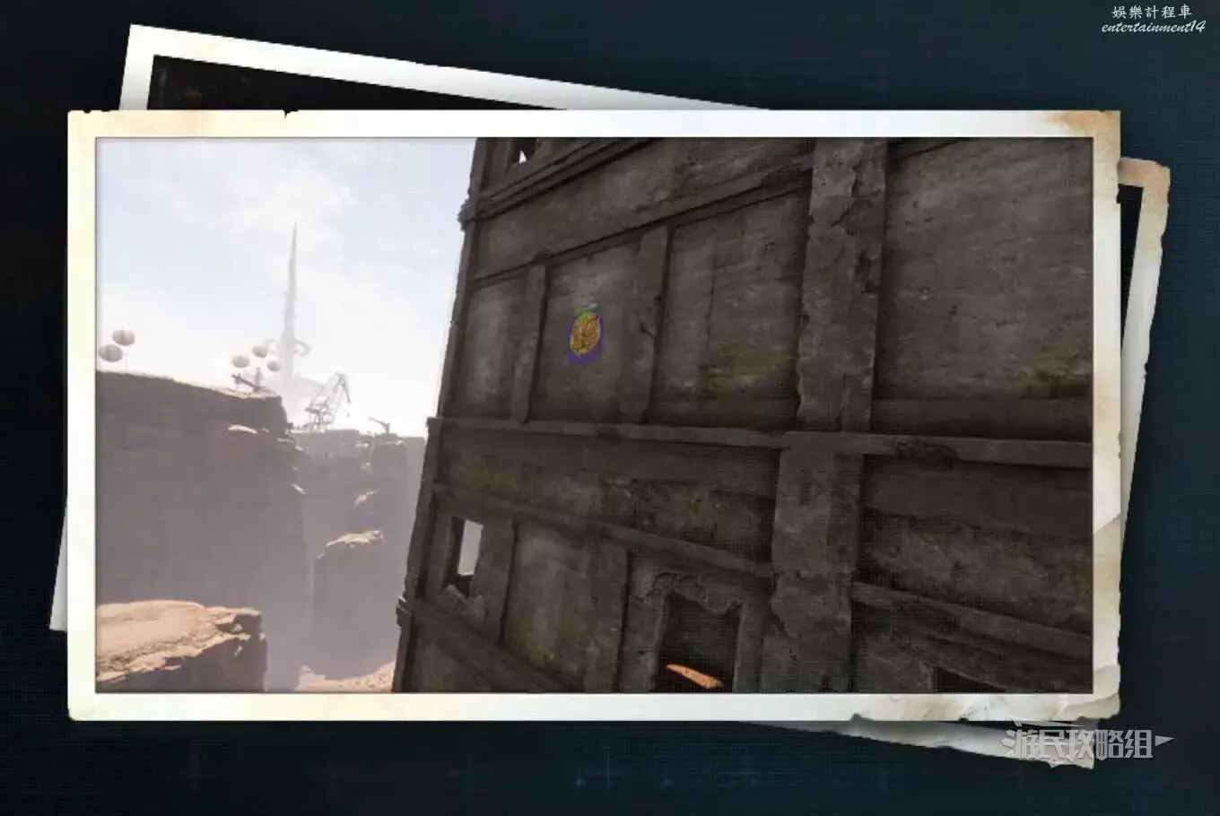 在廢土日光塔西北邊有一塊很大的廣告牌,蝴蝶就在廣告牌上,可以直接在地面上找好角度拍照,或者利用旁邊的天線爬到高處拍照都行。